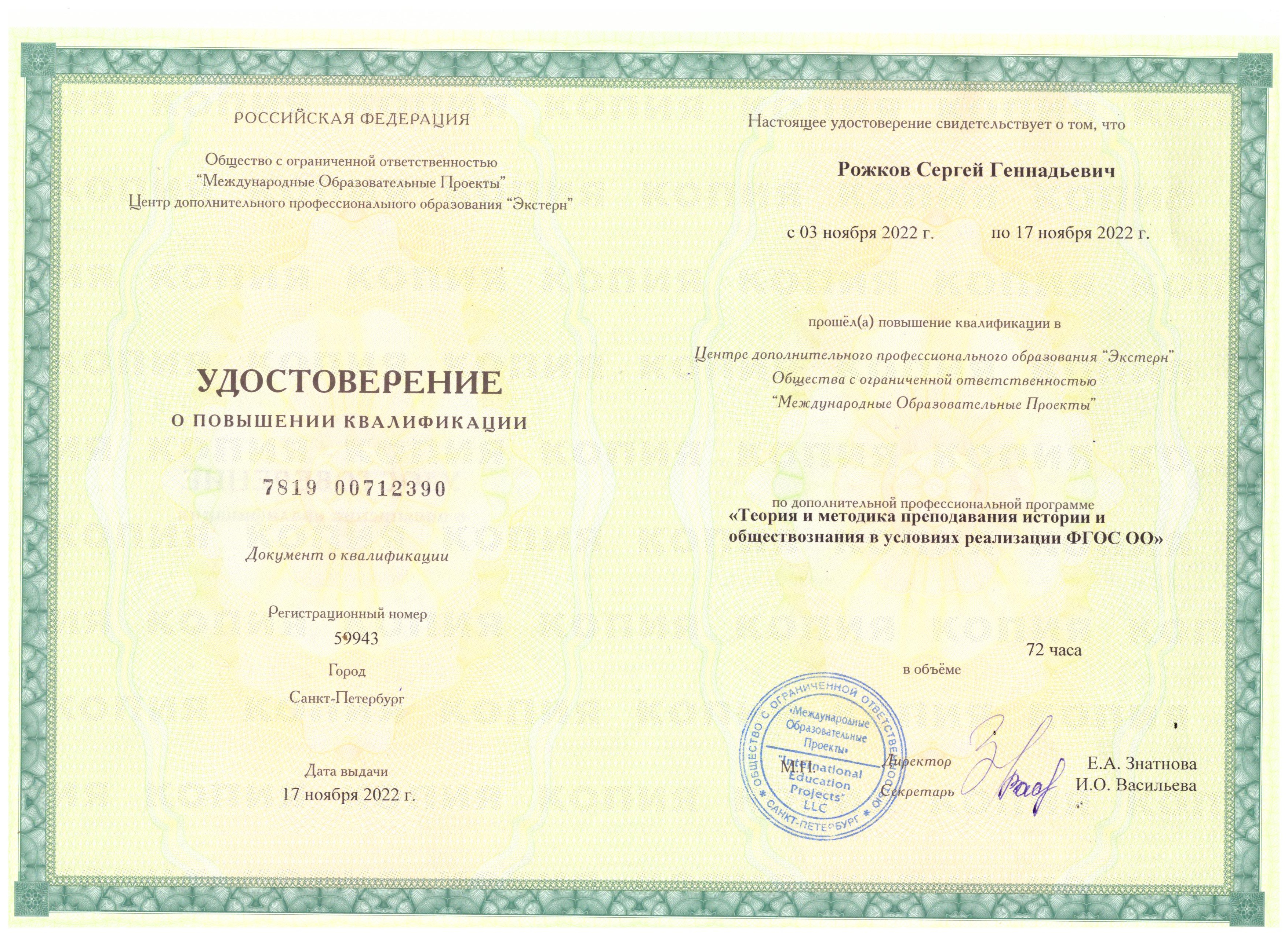 Обучение по курсу: Теория и методика преподавания истории и обществознания в условиях реализации ФГОС ОО. Документ о повышении квалификации: скачать
