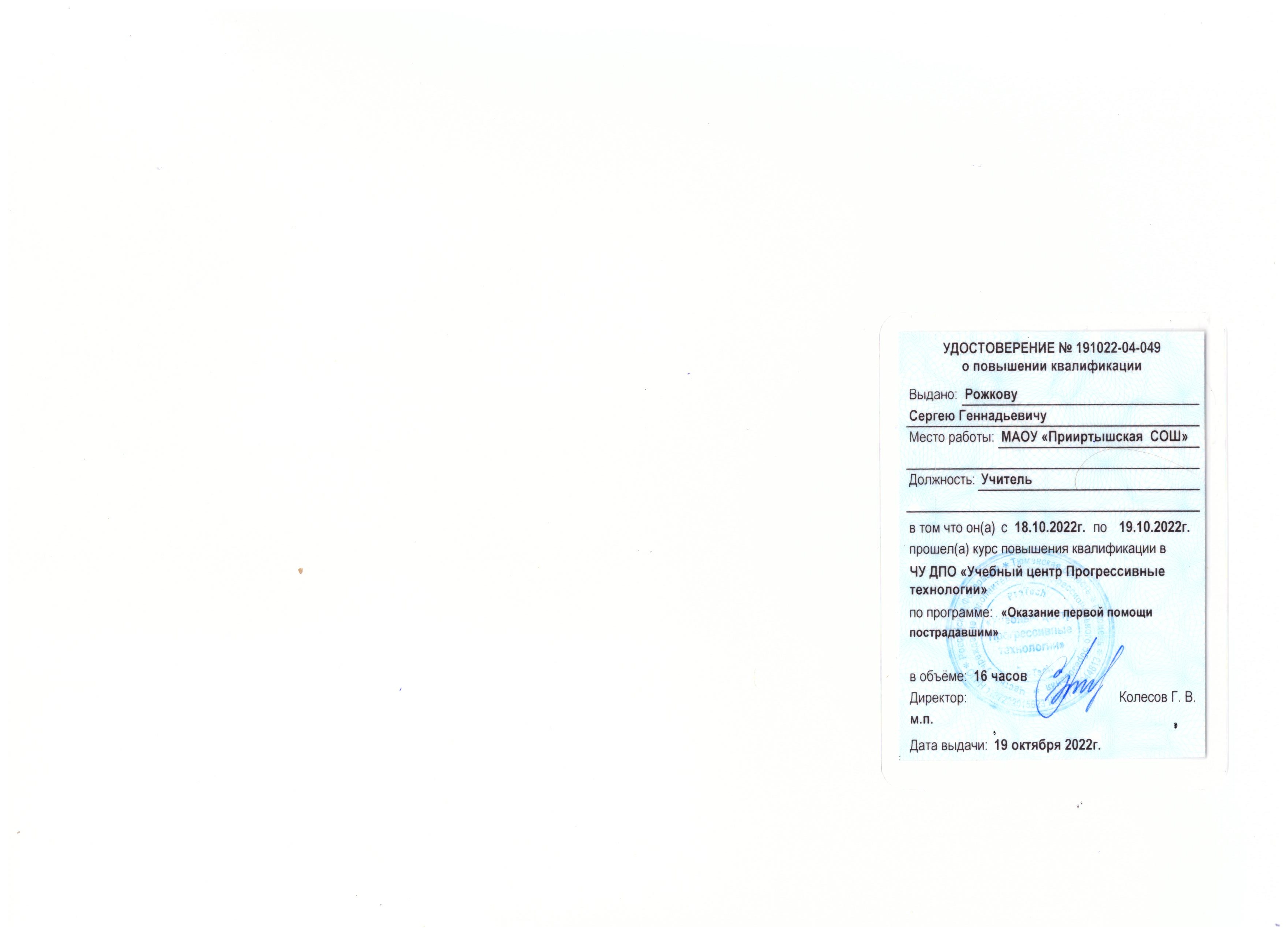 Обучение по курсу: Оказание первой помощи пострадавшим . Документ о повышении квалификации: скачать