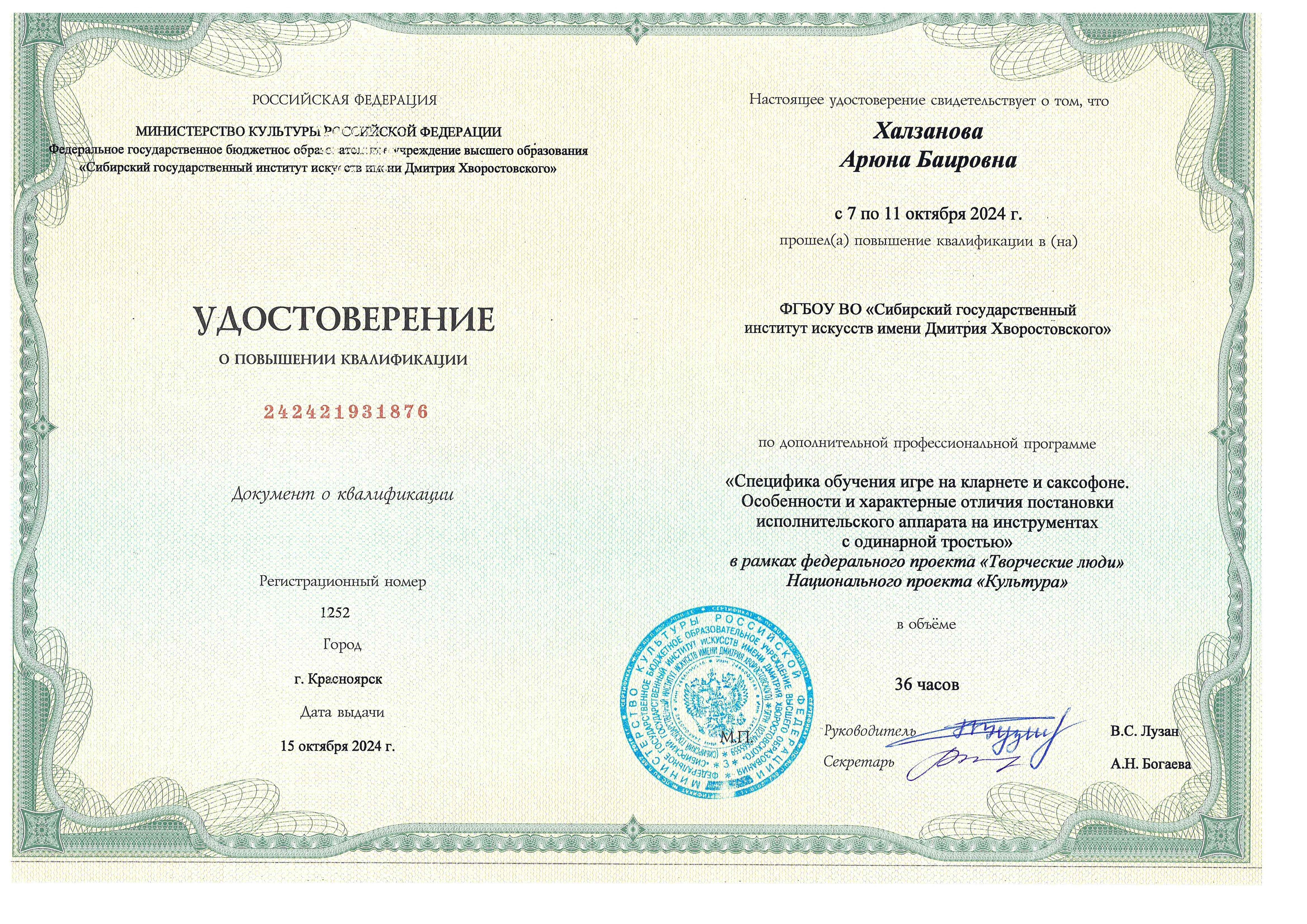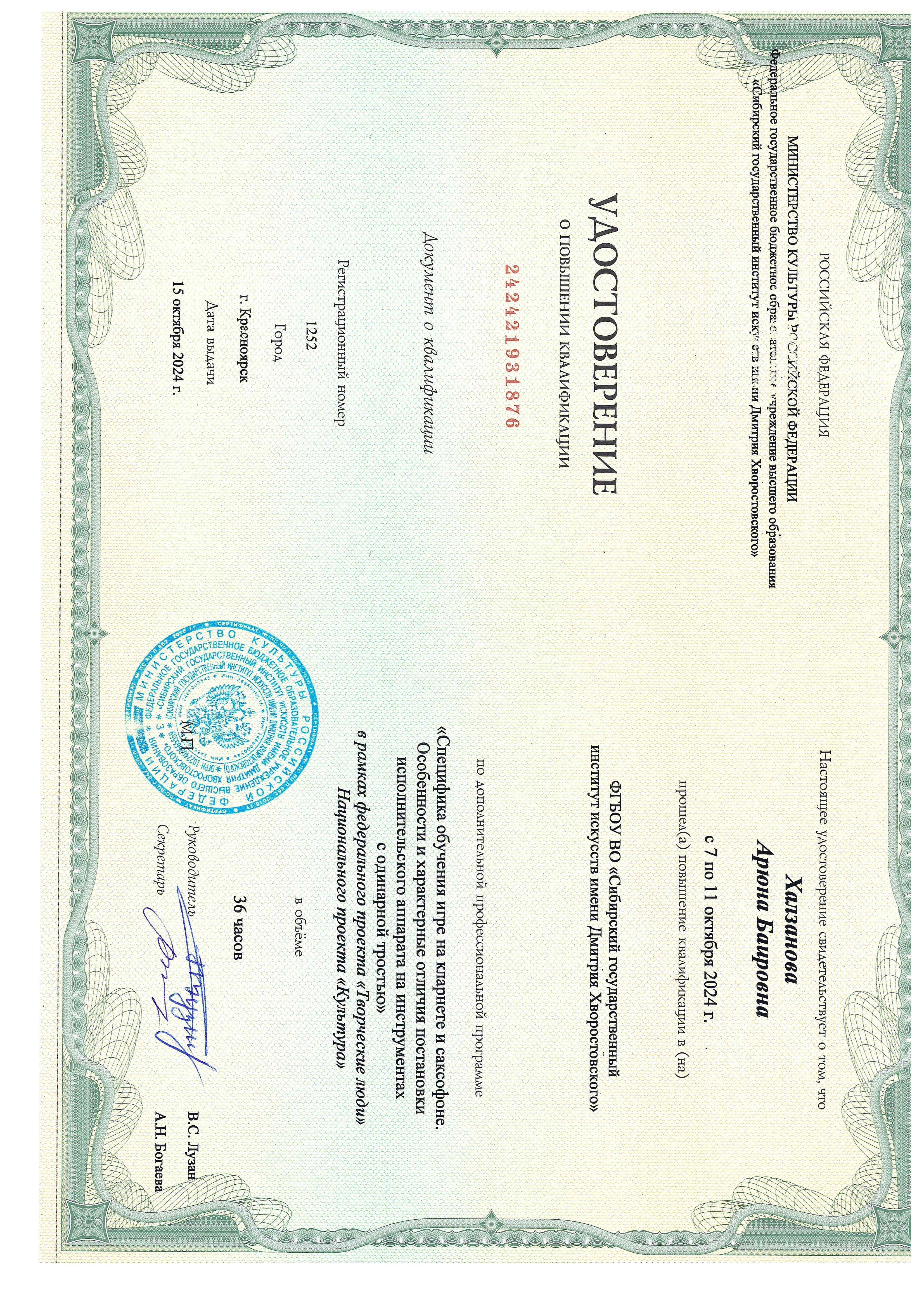 Обучение по курсу: " Специфика обучения игре на кларнете и саксофоне . Особенности и характерные отличия постановки исполнительского аппарата на инструментах с одинарной тростью". Документ о повышении квалификации: скачать