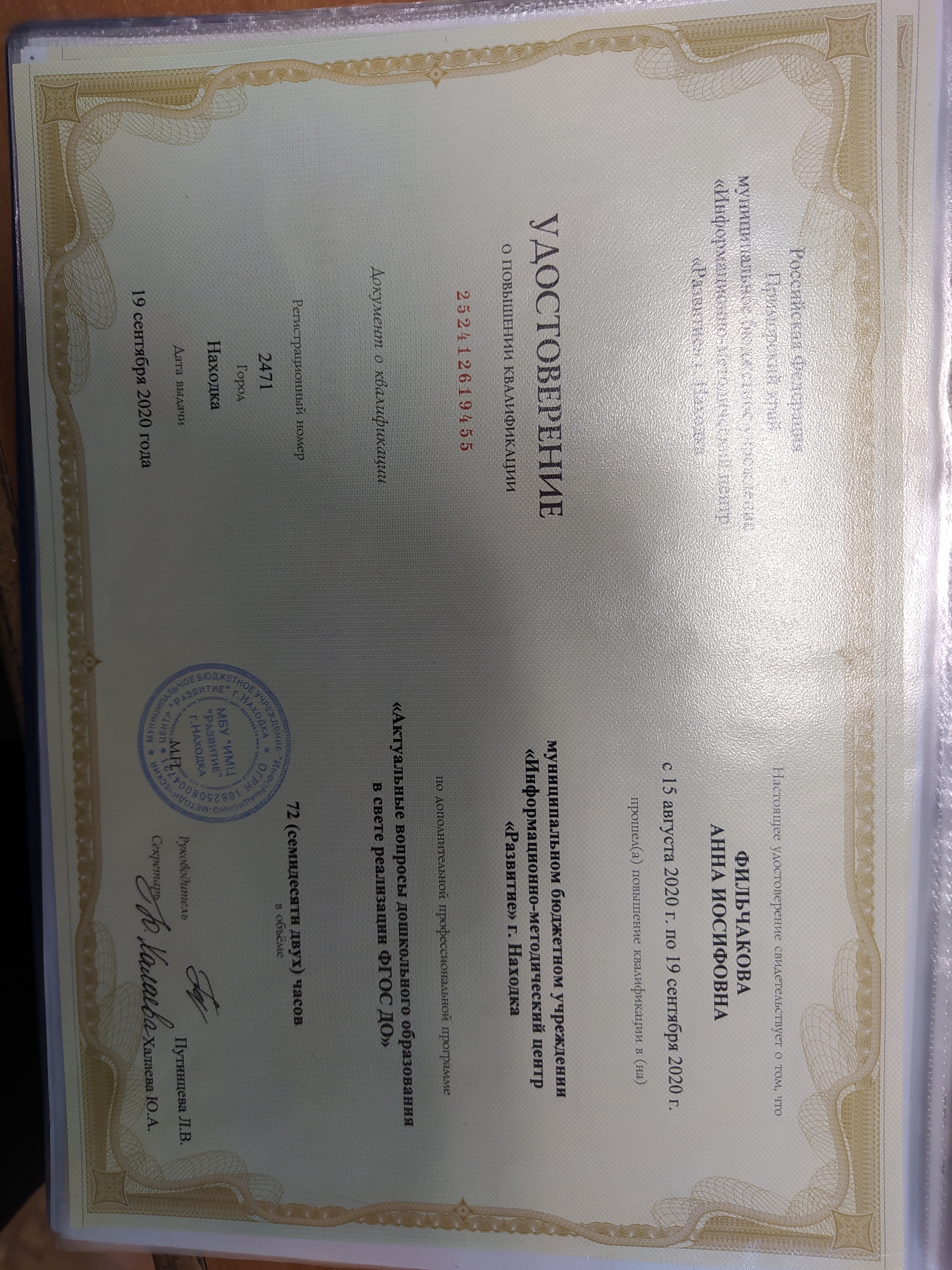 Обучение по курсу: Актуальные вопросы дошкольного образования в свете реализации ФГОС ДО". Документ о повышении квалификации: скачать