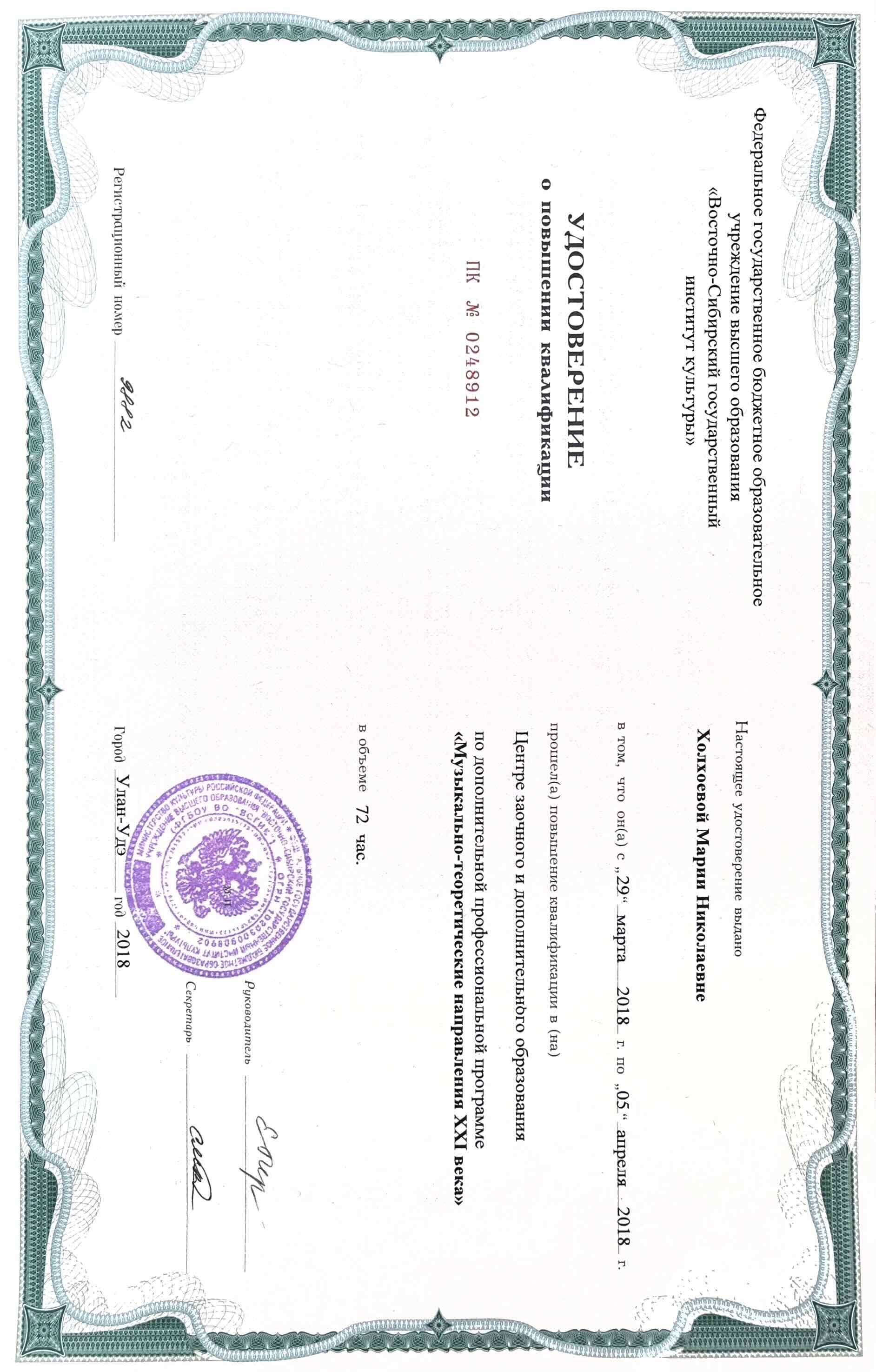 Обучение по курсу: Музыкально - теоретические направления XXI века. Документ о повышении квалификации: скачать
