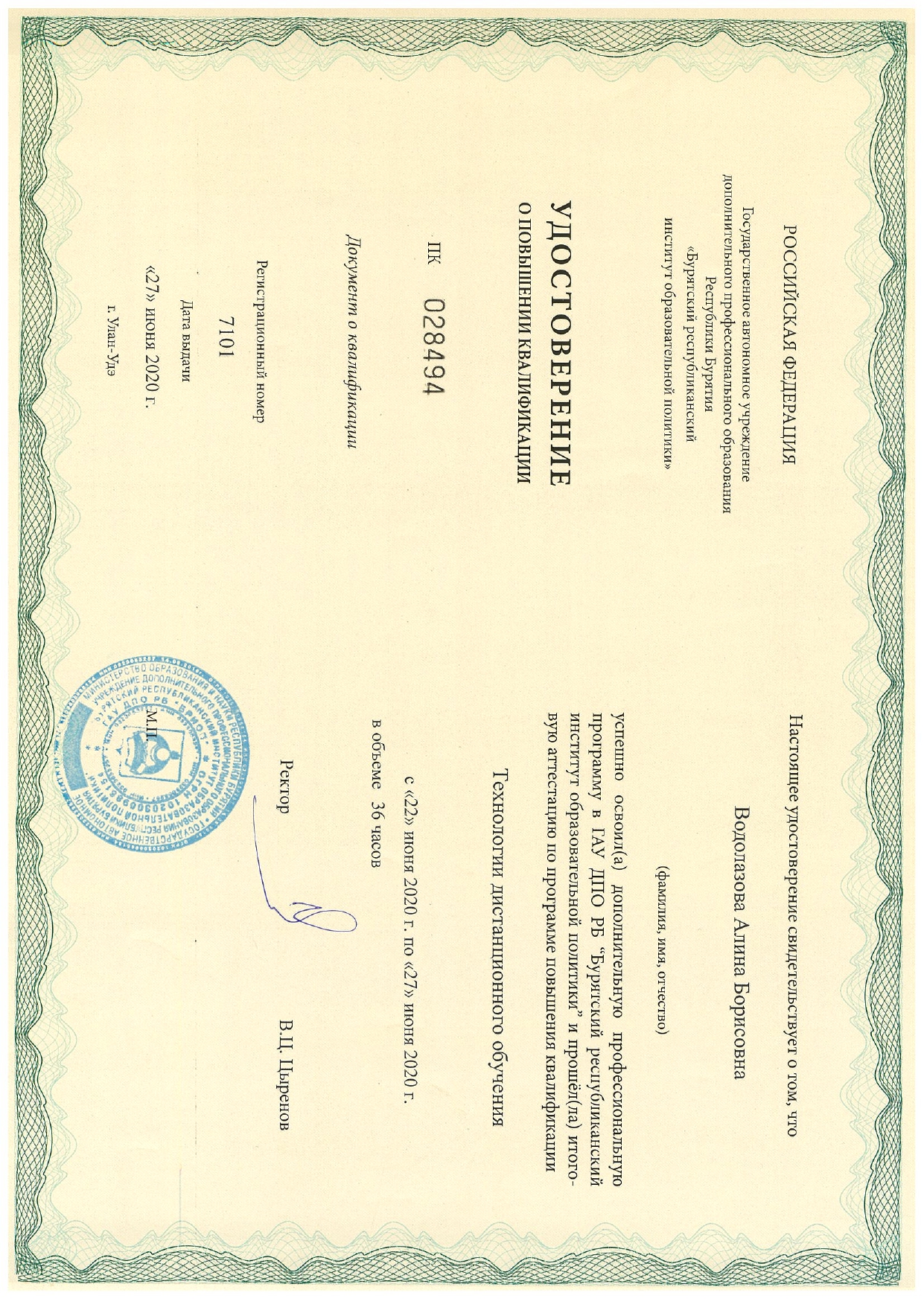 Обучение по курсу: Технологии дистанционного обучения. Документ о повышении квалификации: скачать