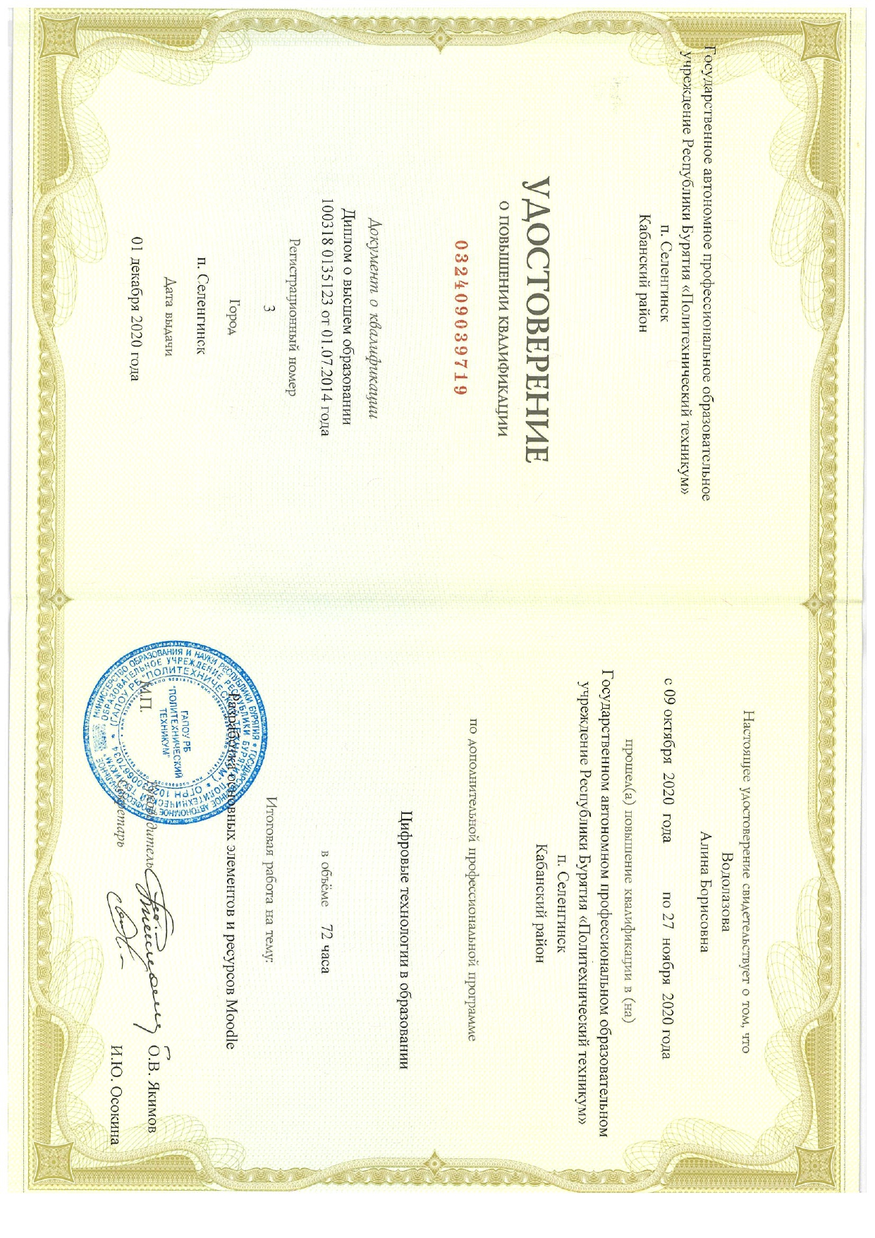 Обучение по курсу: Цифровые технологии в образовании. Документ о повышении квалификации: скачать