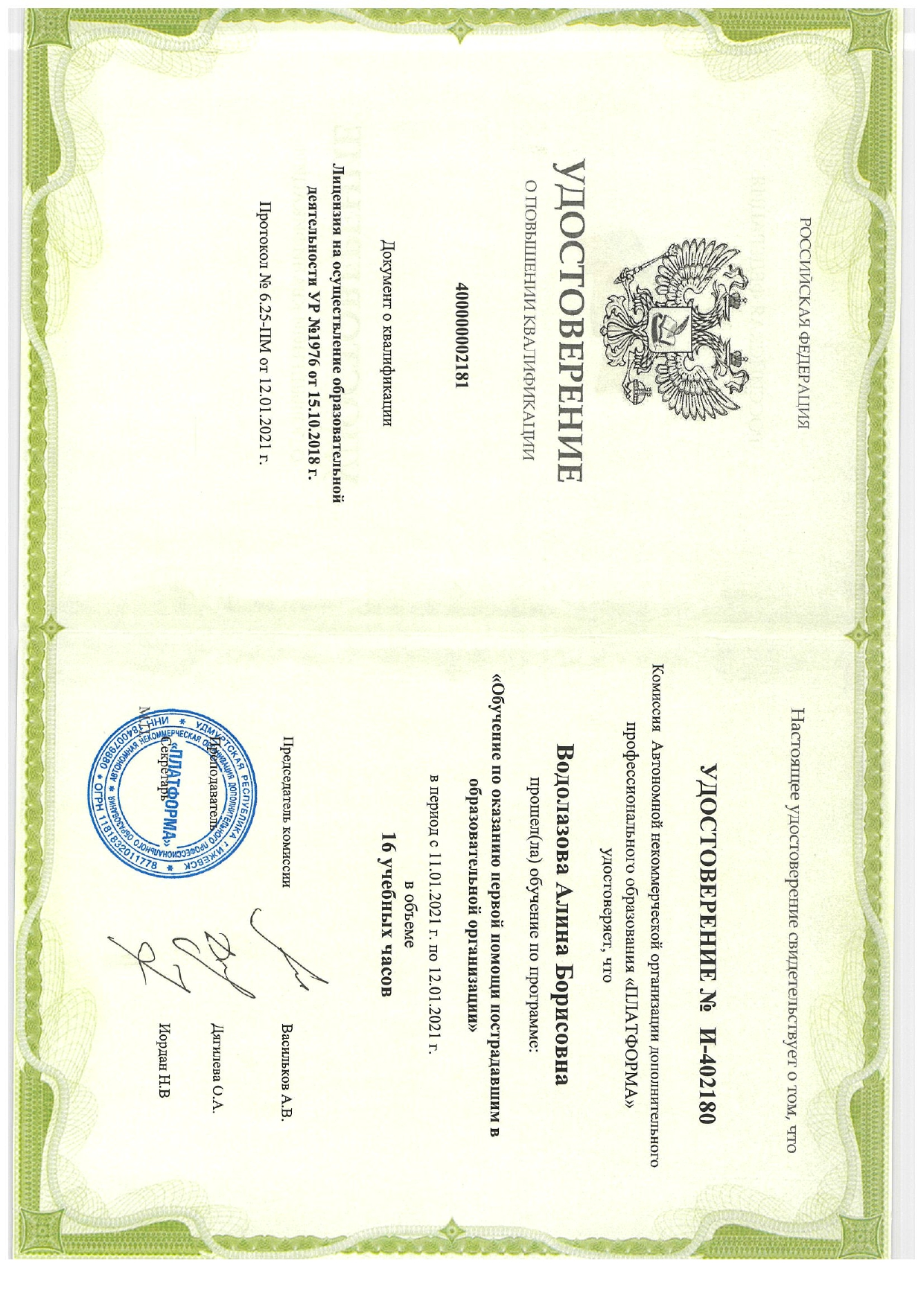 Обучение по курсу: Обучение по оказанию первой помощи пострадавшим в образовательной организации. Документ о повышении квалификации: скачать