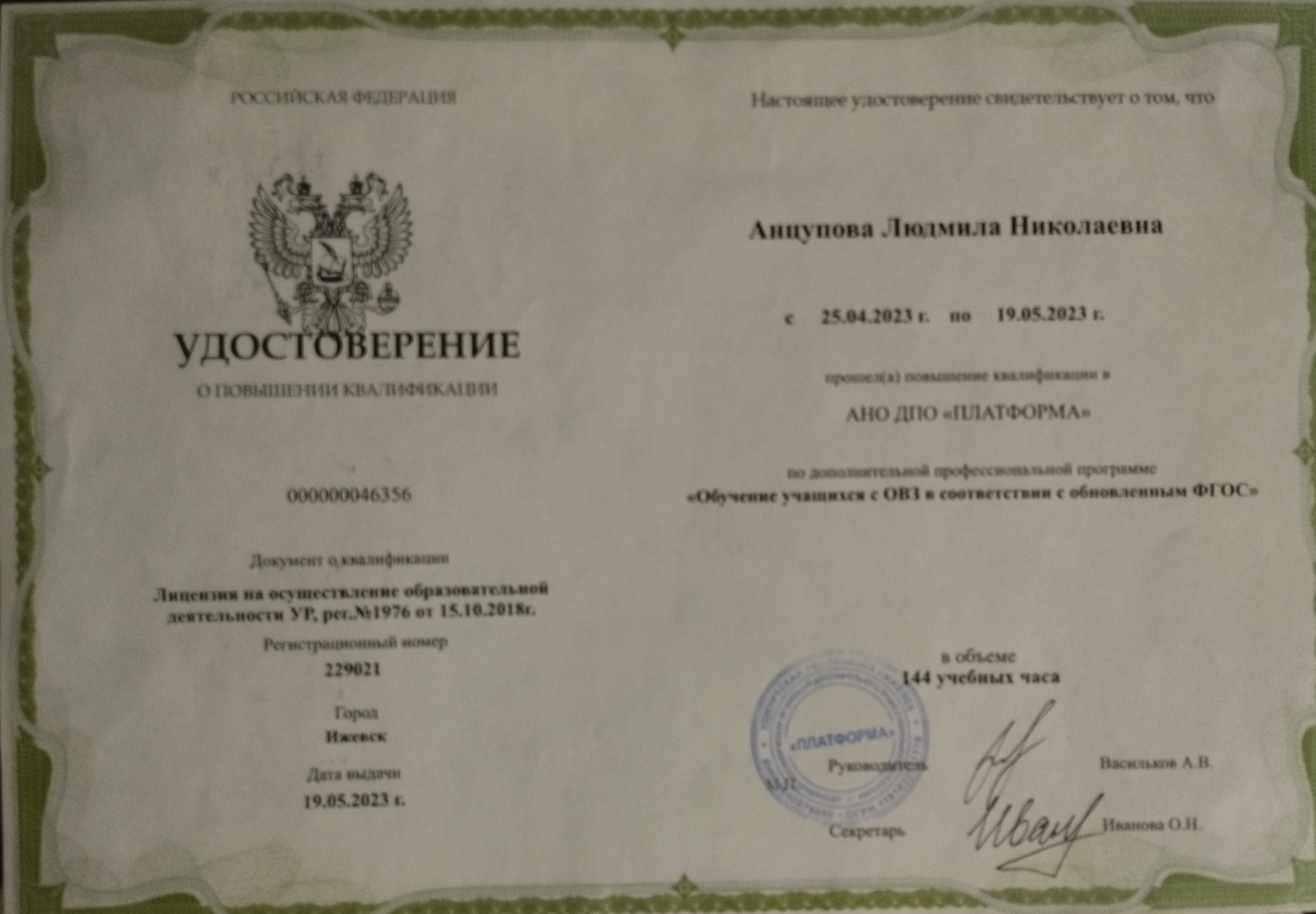 Обучение по курсу: Обучение учащихся с ОВЗ в соответствии с обновленным ФГОС. Документ о повышении квалификации: скачать