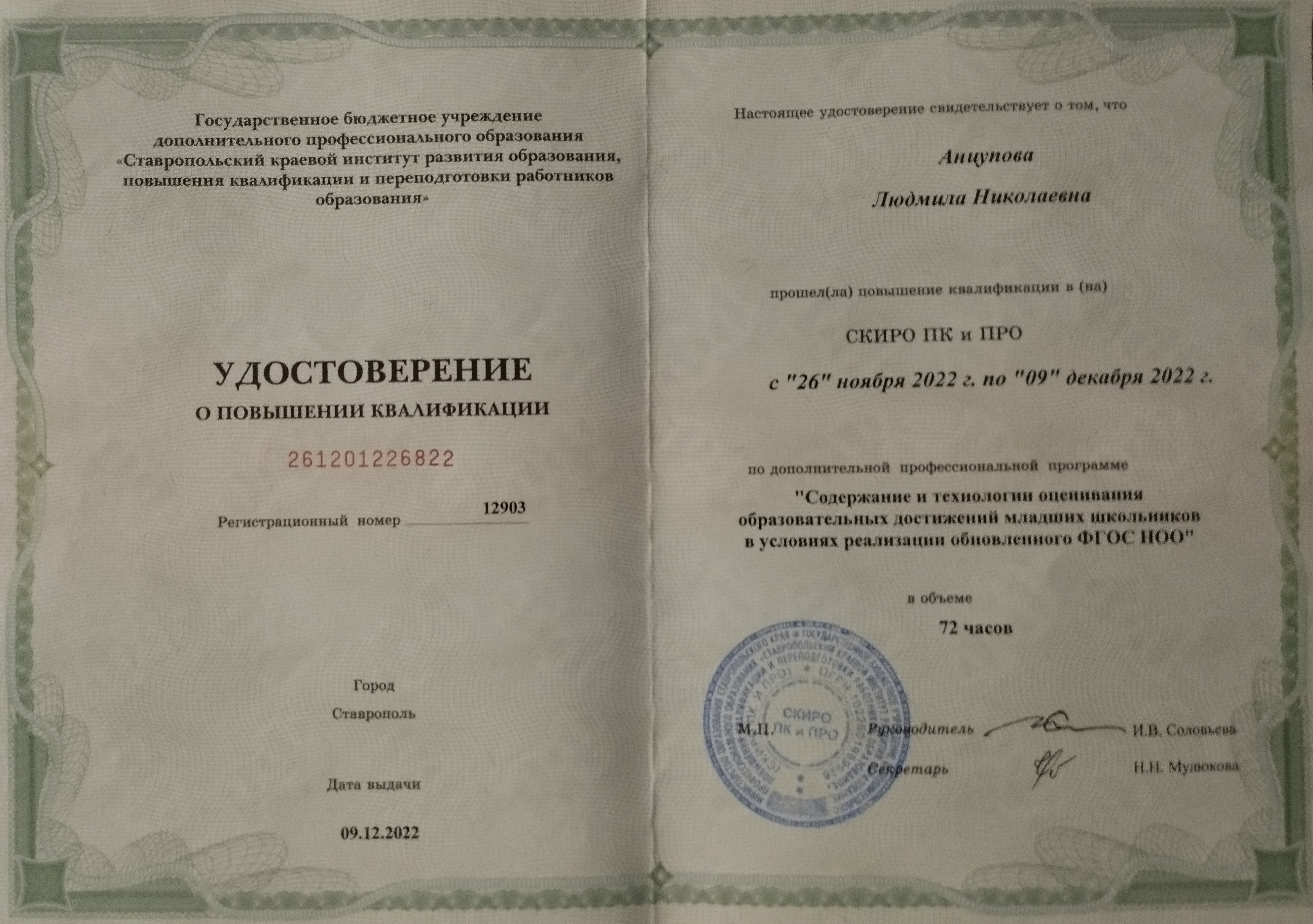 Обучение по курсу: Содержание и технологии оценивания образовательных достижений младших школьников в условиях реализации обновленного ФГОС НОО. Документ о повышении квалификации: скачать