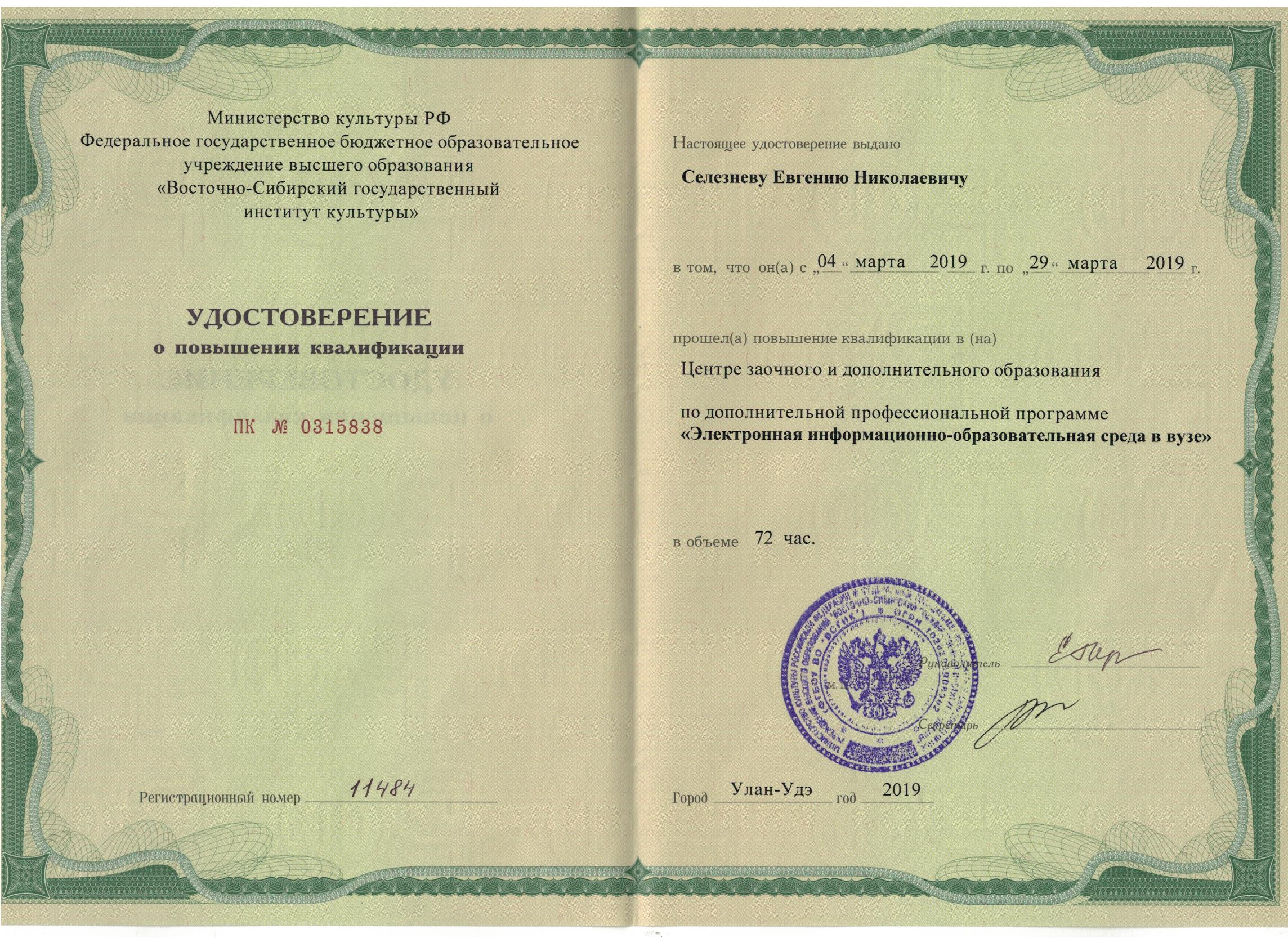 Обучение по курсу: Электронная информационно-образовательная среда в вузе. Документ о повышении квалификации: скачать