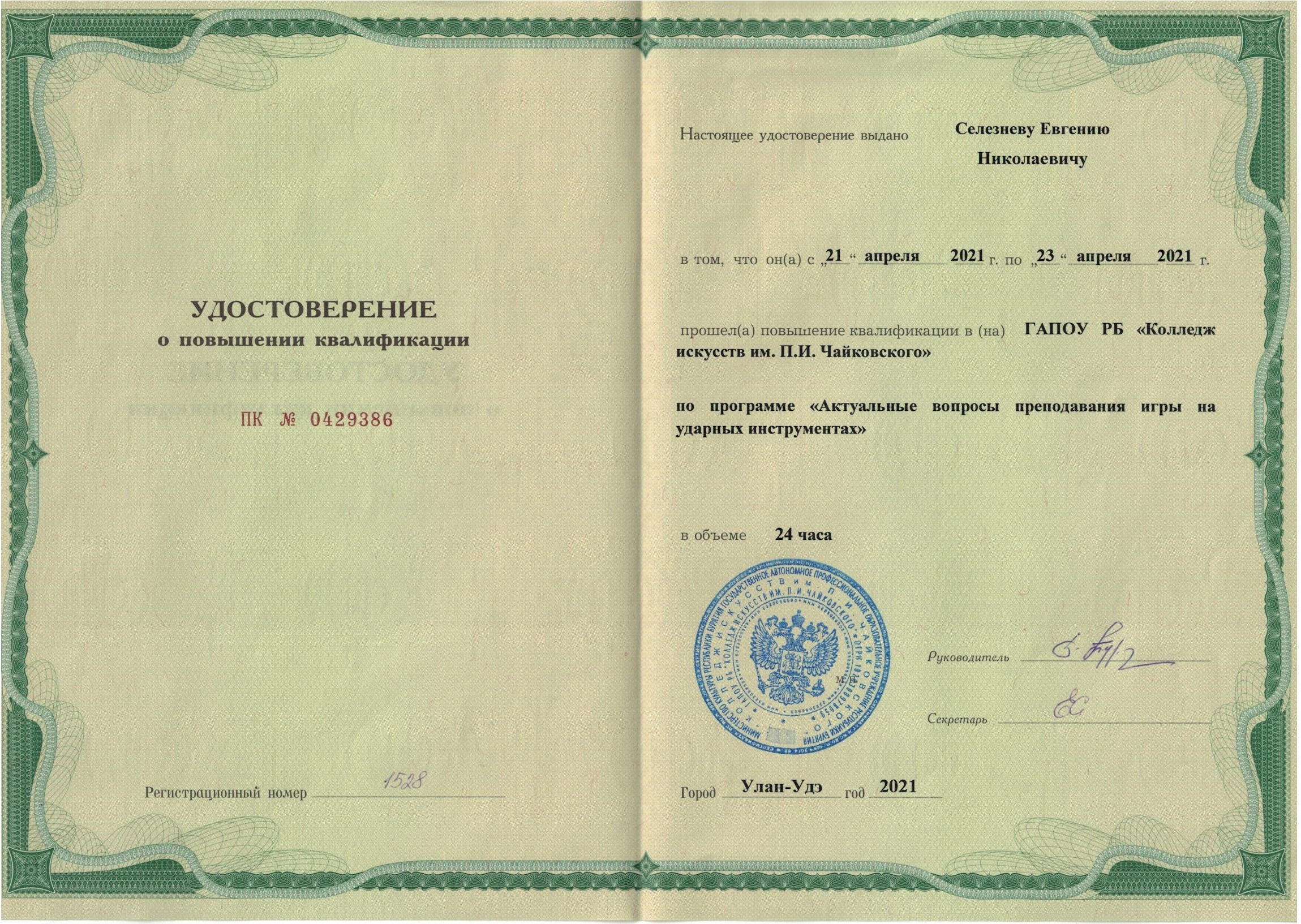 Обучение по курсу: Актуальные вопросы преподавания игры на ударных инструментах. Документ о повышении квалификации: скачать