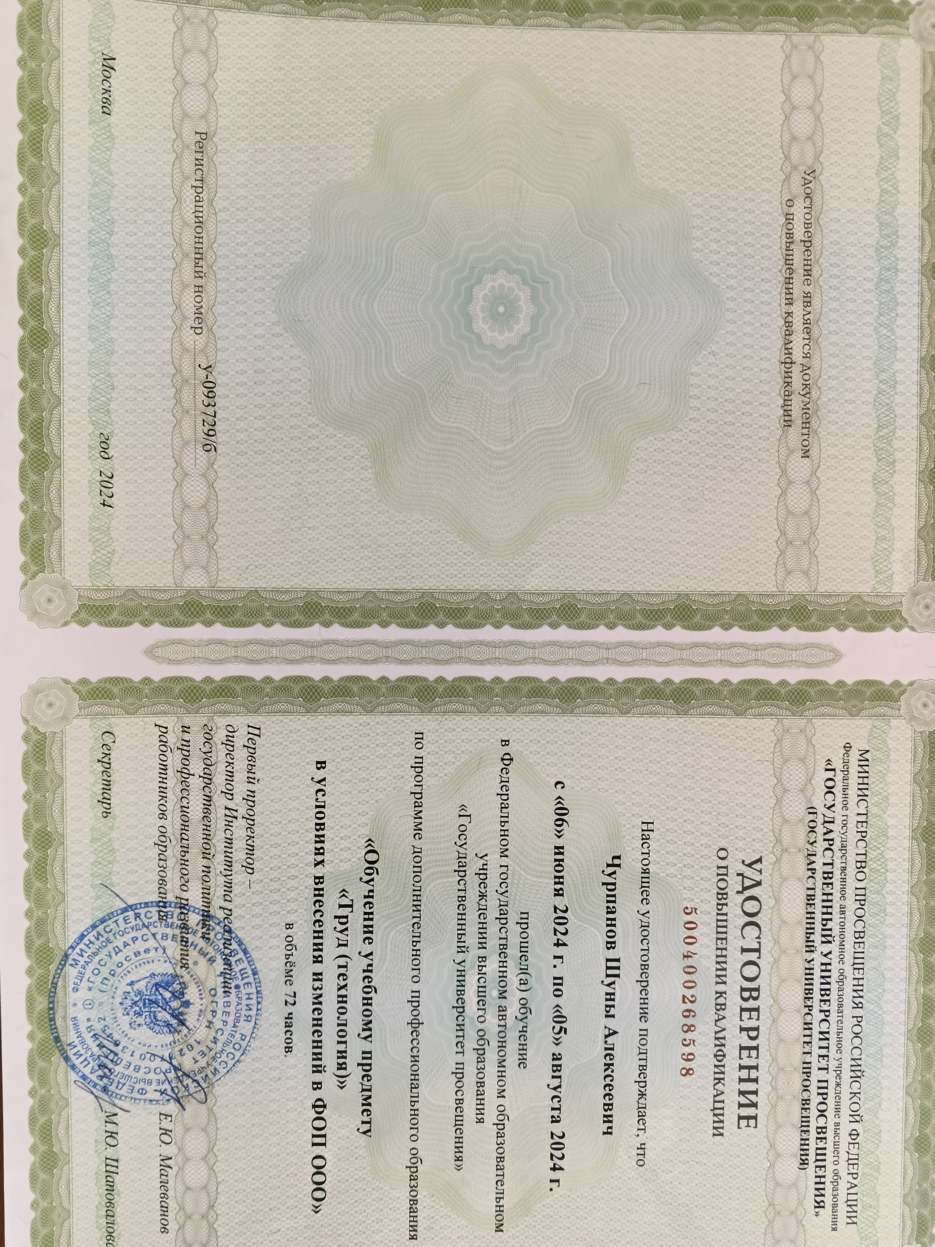 Обучение по курсу: Обучение учебному предмету "Труд(технология)"в условиях внесения изменений в ФОП ООО. Документ о повышении квалификации: скачать