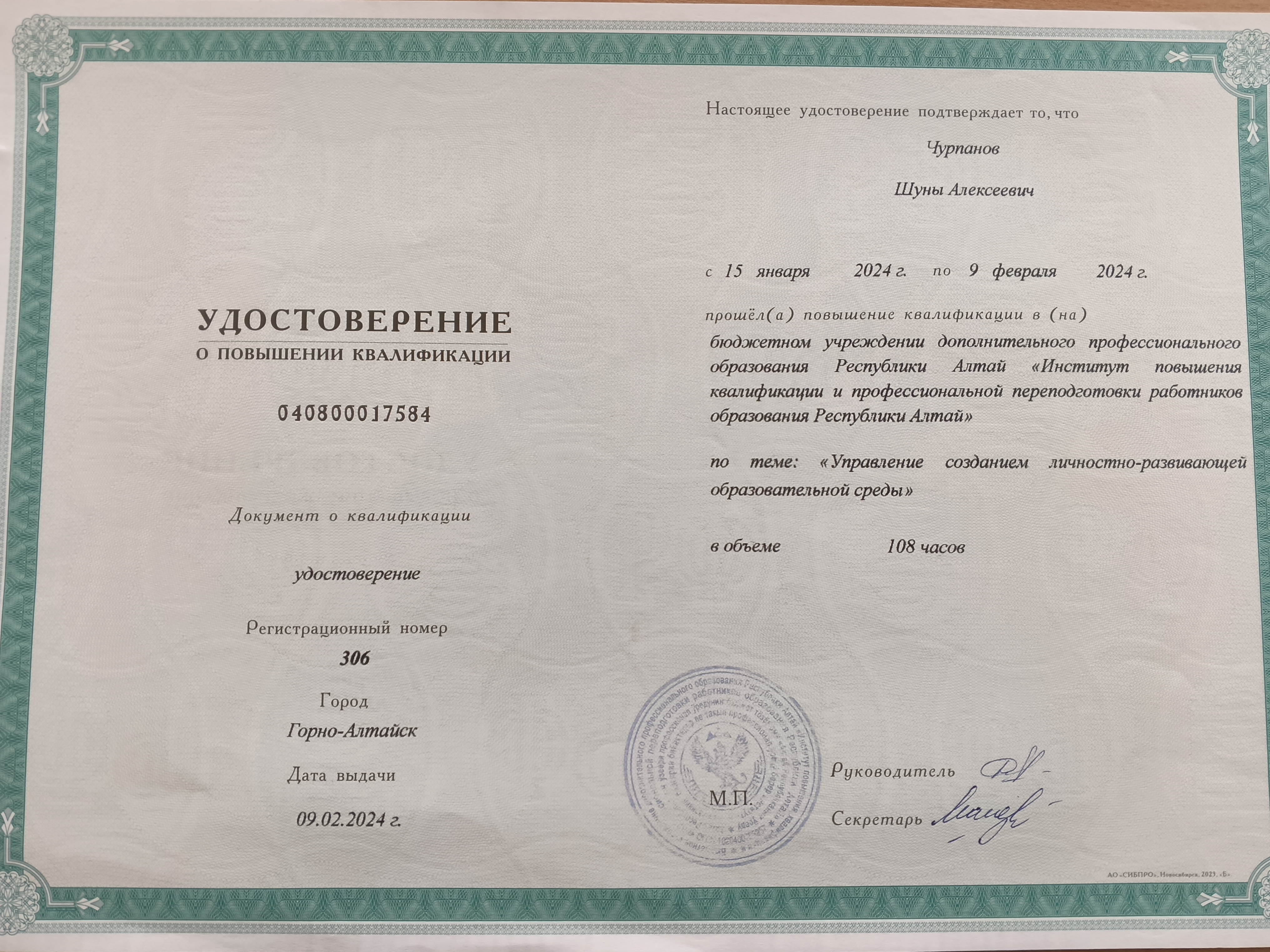Образование по специальности: Филология, учитель алтайского языка и литературы. Присвоена квалификация: бакалавр педагогическое образование. Документ о получении образования: скачать