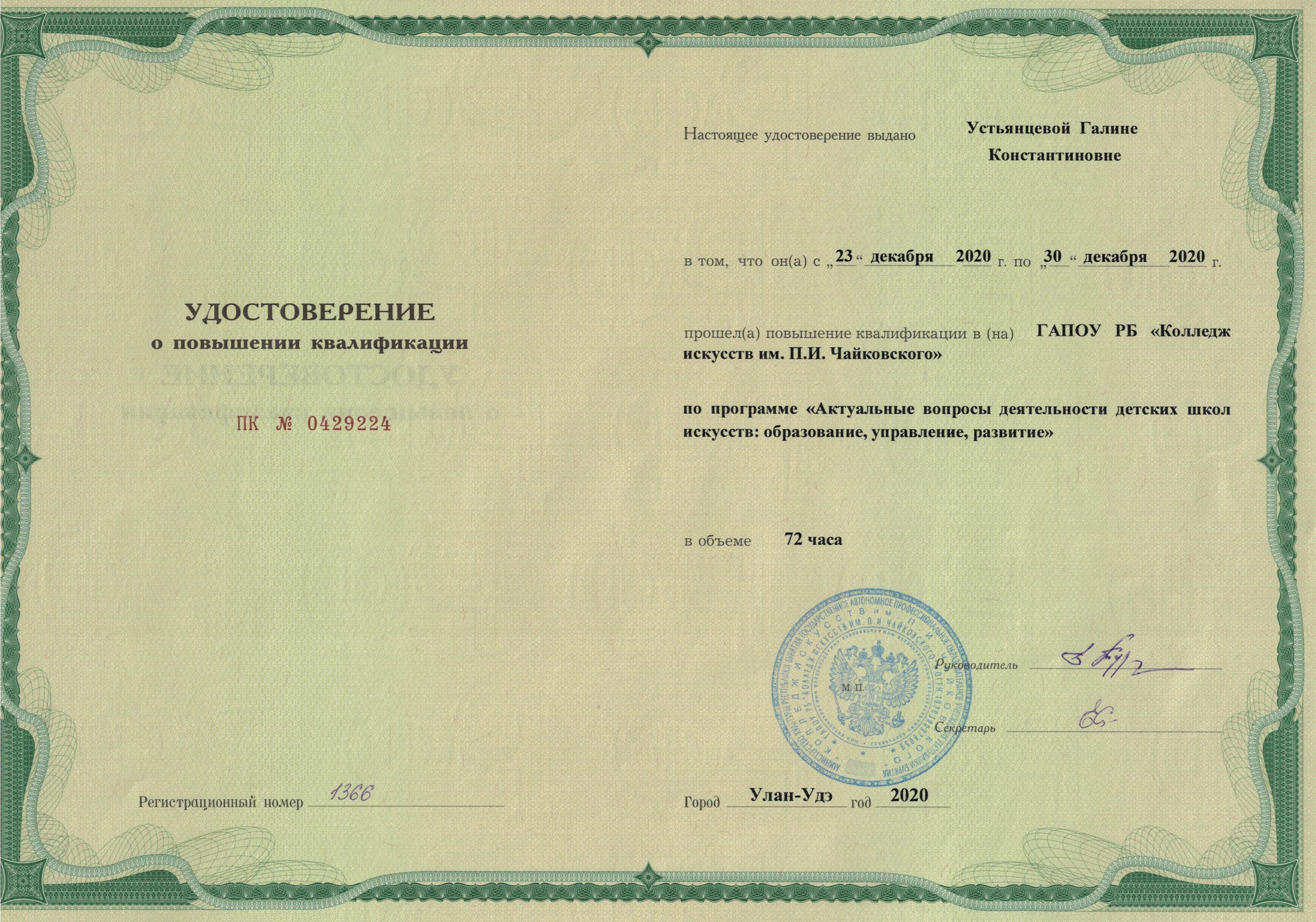 Обучение по курсу: Актуальные вопросы деятельности детских школ искусств: образование, управление, развитие". Документ о повышении квалификации: скачать