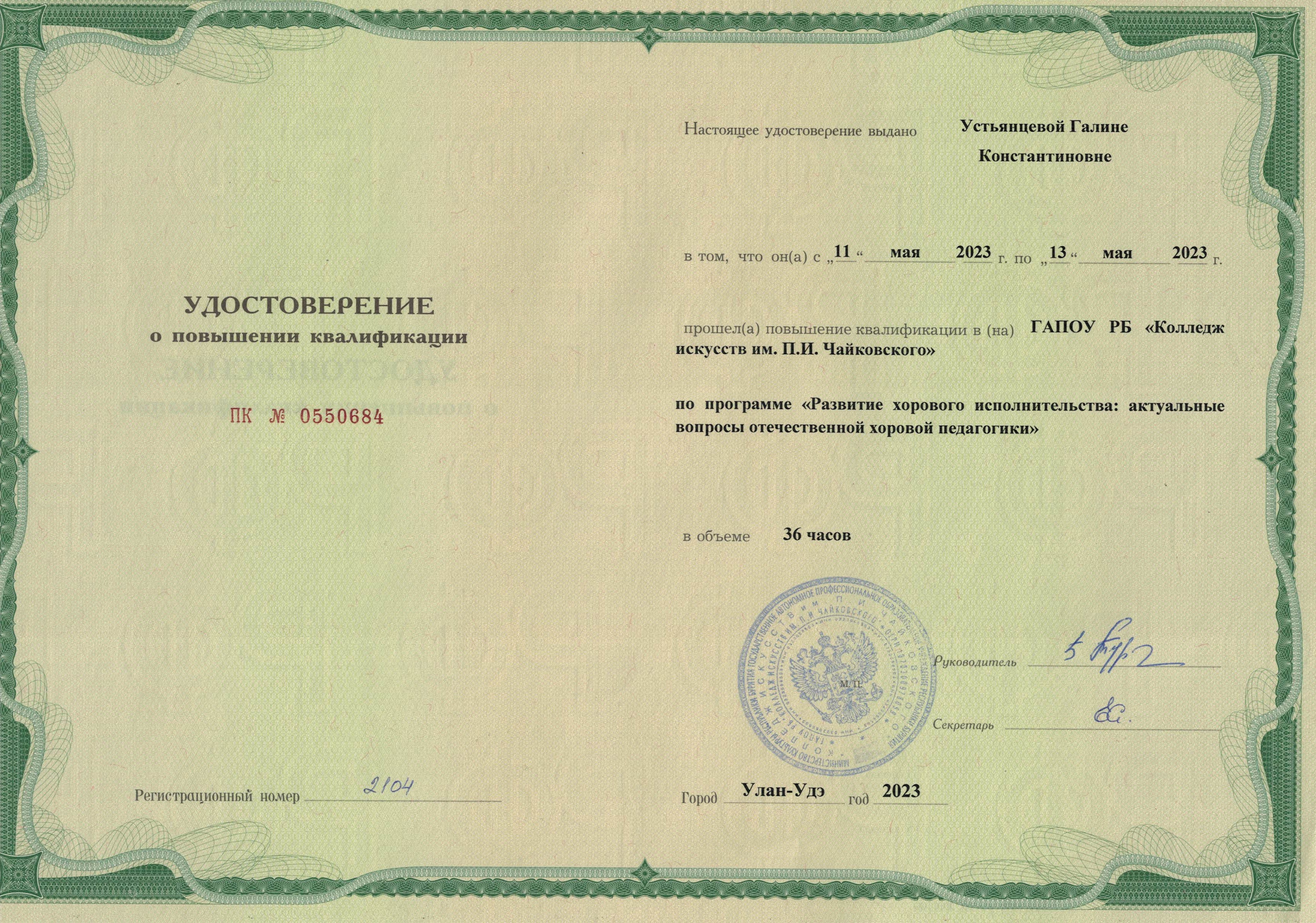 Обучение по курсу: Развитие хорового исполнительства: актуальные вопросы отечественной хоровой педагогики". Документ о повышении квалификации: скачать