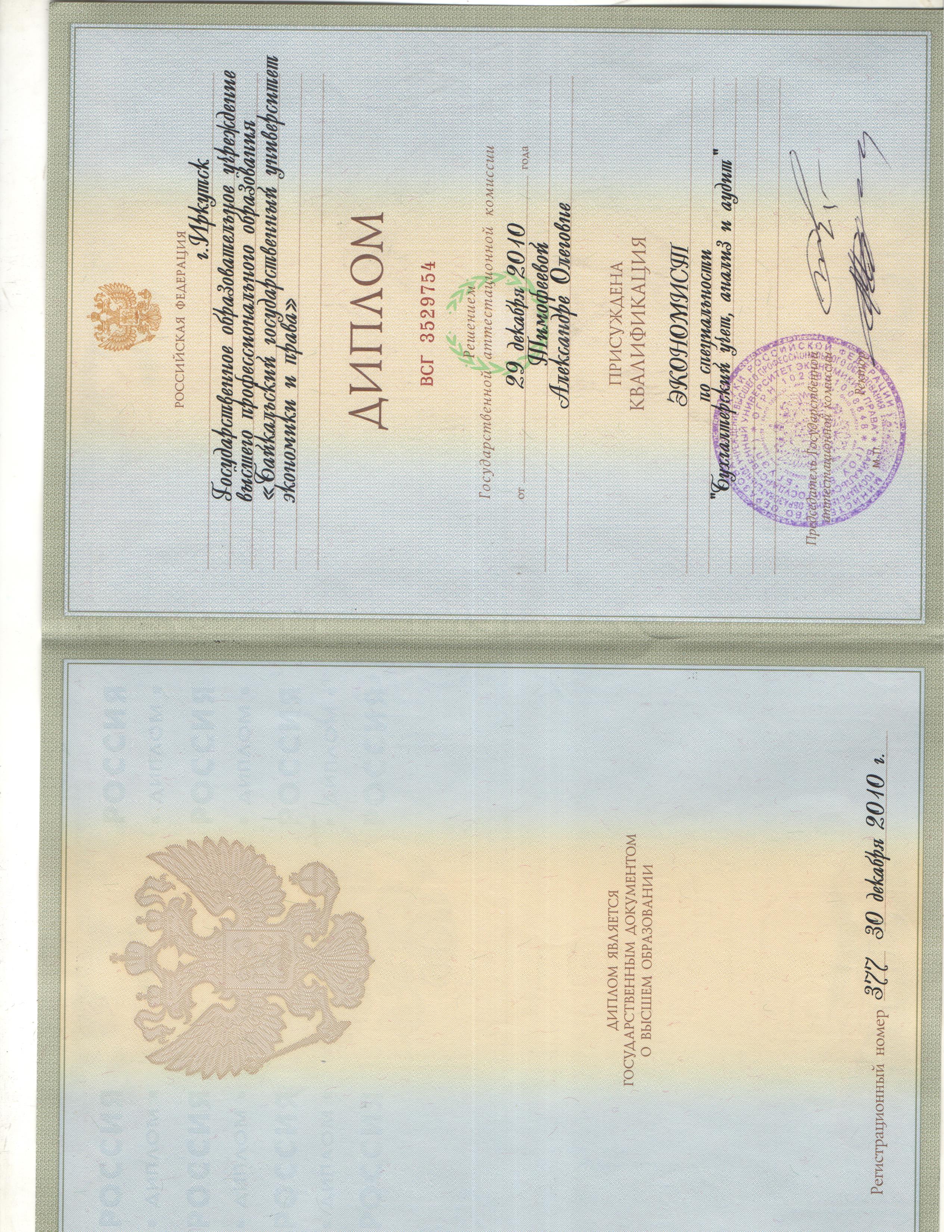 Образование по специальности: Бухгалтерский учет, анализ и аудит. Присвоена квалификация: экономист. Документ о получении образования: скачать