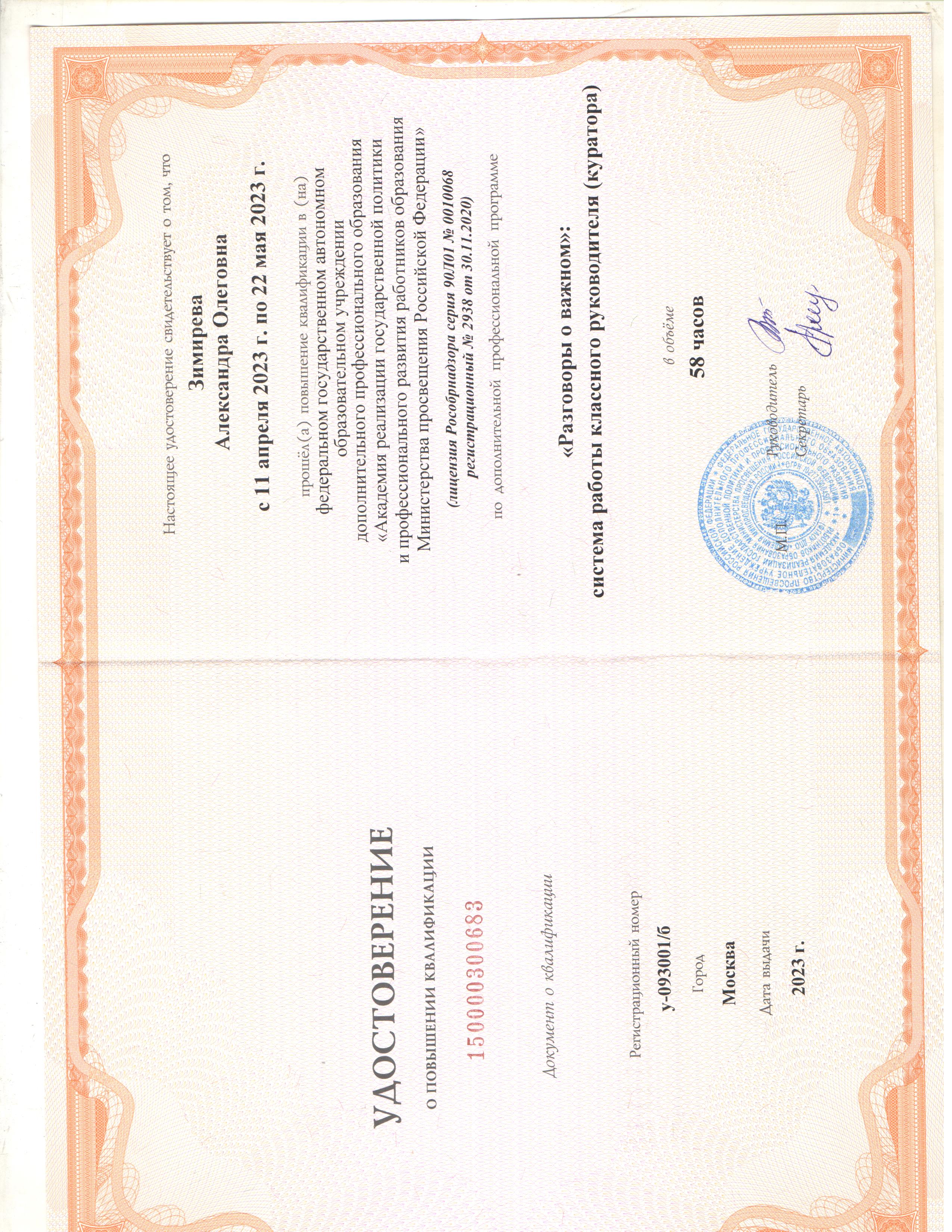Обучение по курсу: "Разговоры о важном": системы работы классного руководителя (куратора). Документ о повышении квалификации: скачать