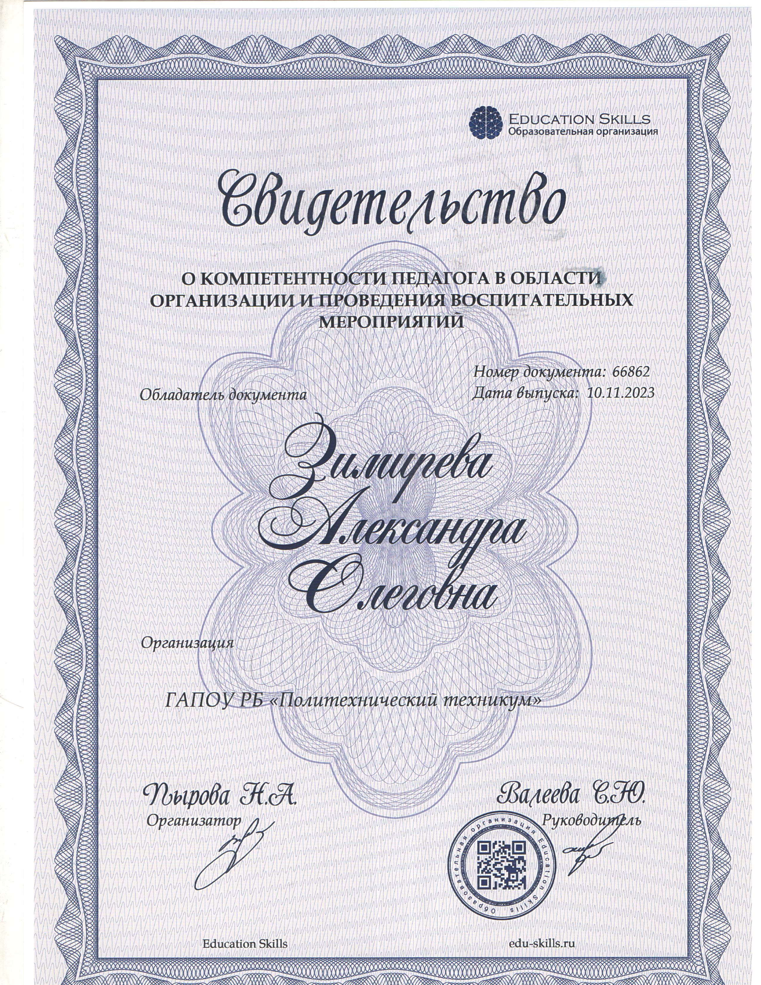 Обучение по курсу: О компетенции педагога в области организации и проведения воспитательных мероприятий. Документ о повышении квалификации: скачать