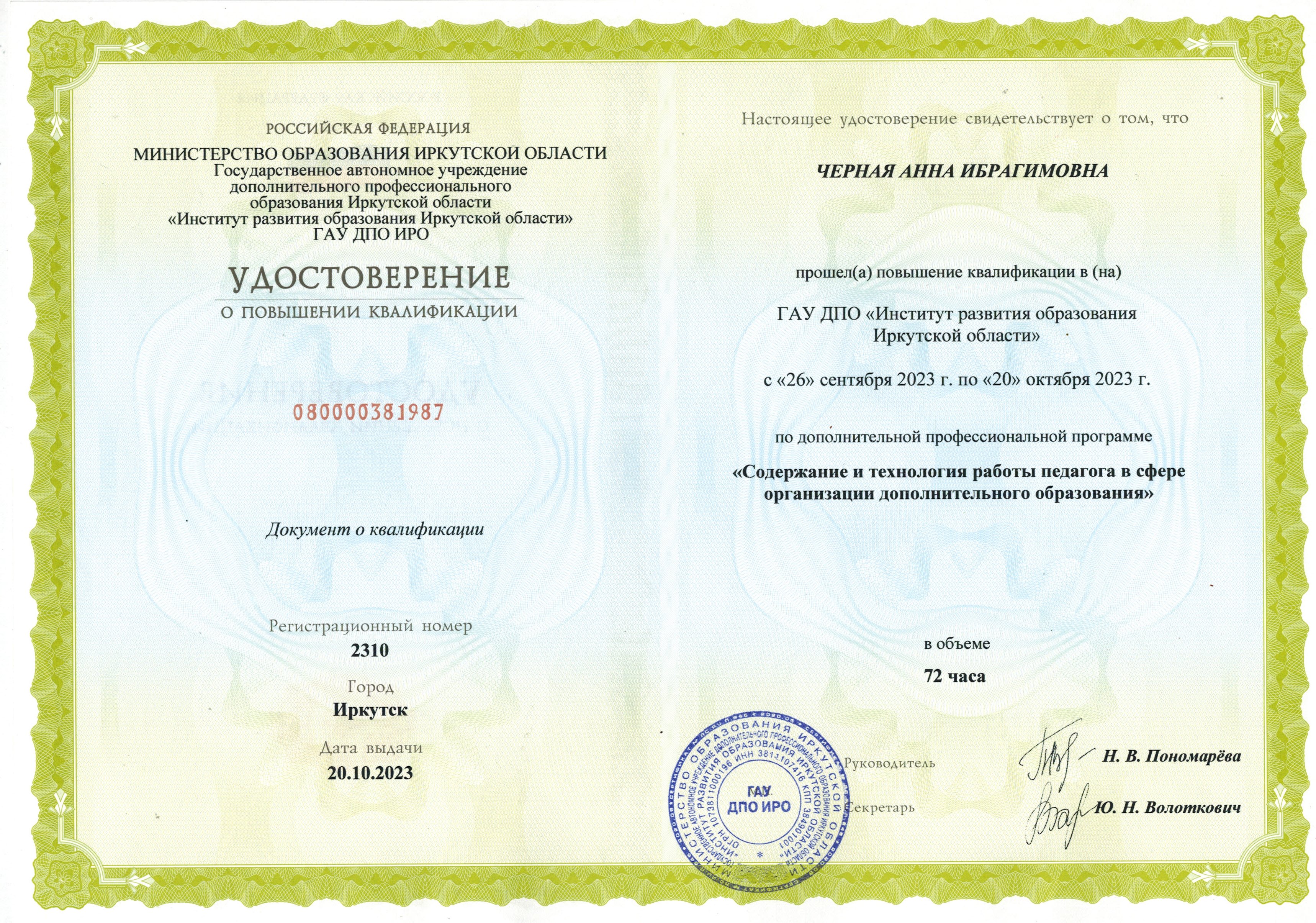 Обучение по курсу: Содержание и технология работы педагога в сфере организации дополнительного образования.. Документ о повышении квалификации: скачать