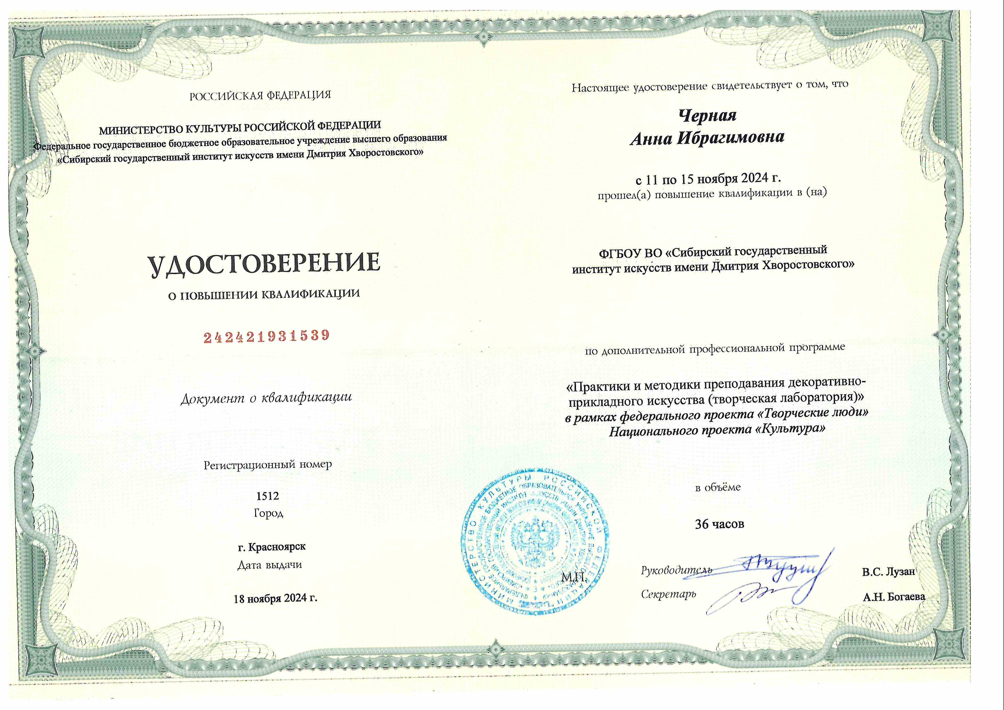 Обучение по курсу: «Практики и методики преподавания декоративно-прикладного искусства (творческая лаборатория)» . Документ о повышении квалификации: скачать