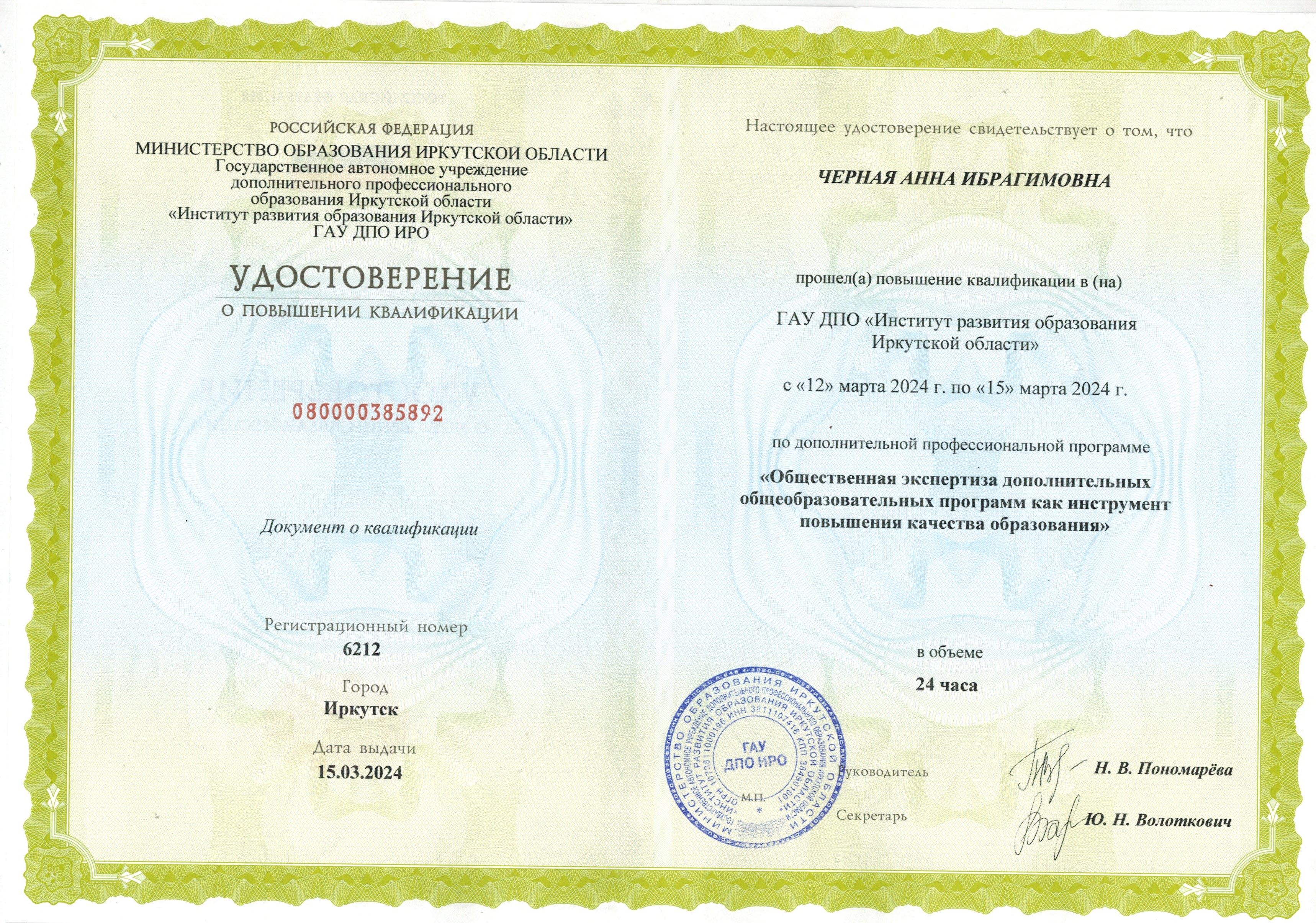 Обучение по курсу: Обучение по курсу: общественная экспертиза дополнительных общеобразовательных программ как инструмент повышения качества образования.. Документ о повышении квалификации: скачать