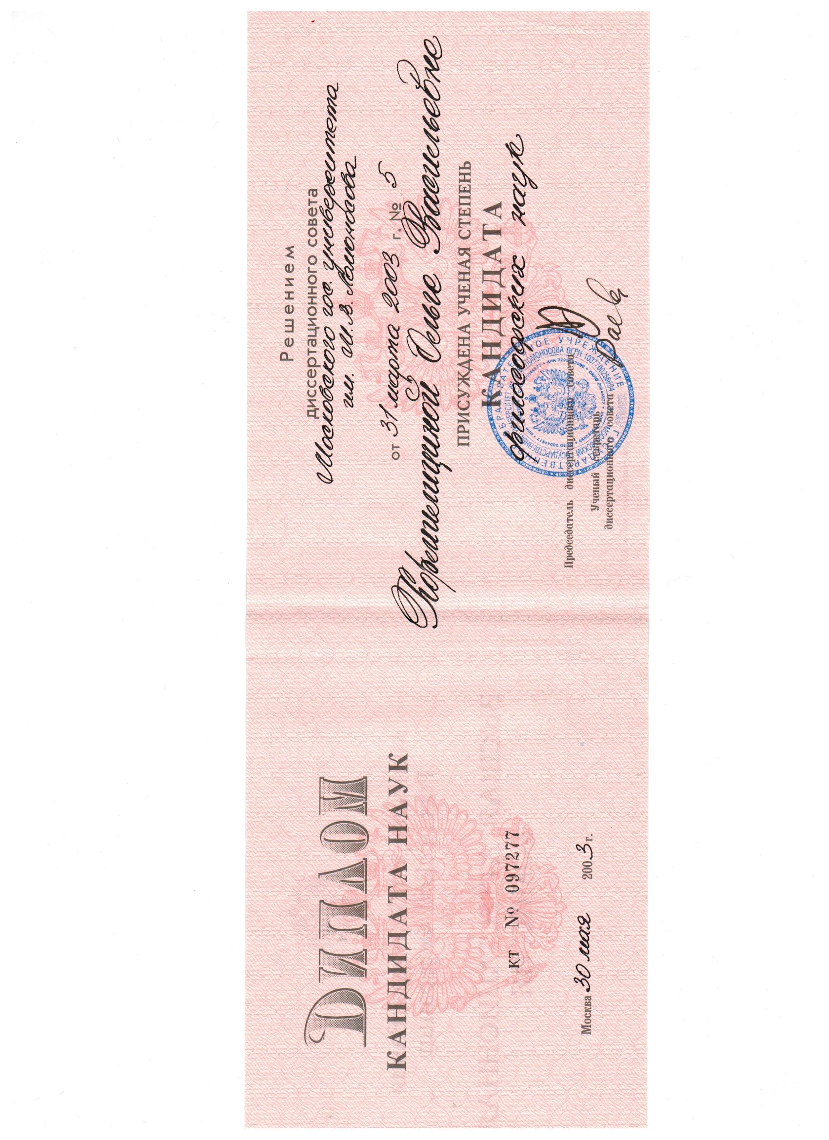 Образование по специальности: Социальная философия. Присвоена квалификация: Кандидат философских наук. Документ о получении образования: скачать