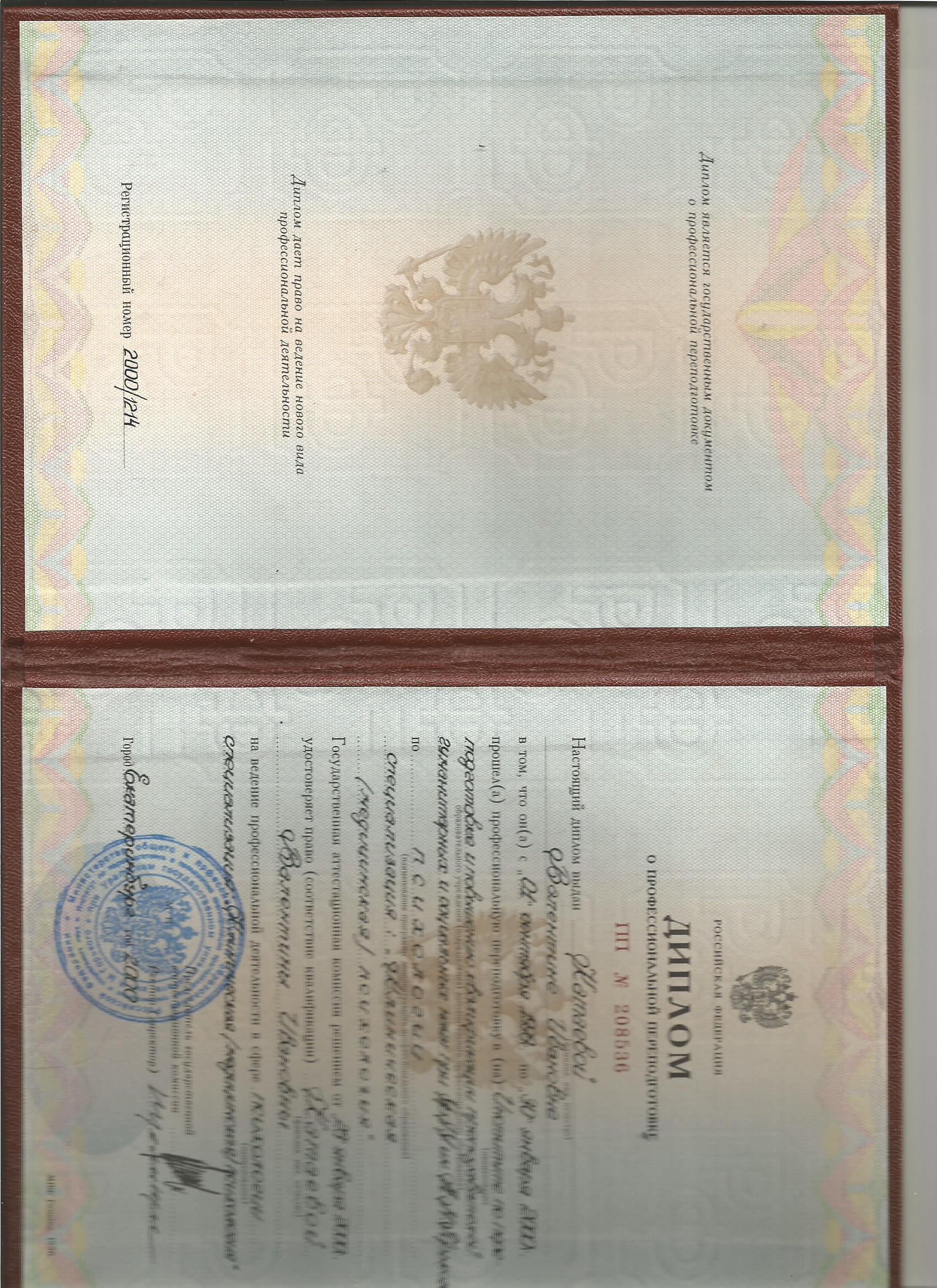 Образование по специальности: социальная педагогика. Присвоена квалификация: социальный педагог-эколог. Документ о получении образования: скачать