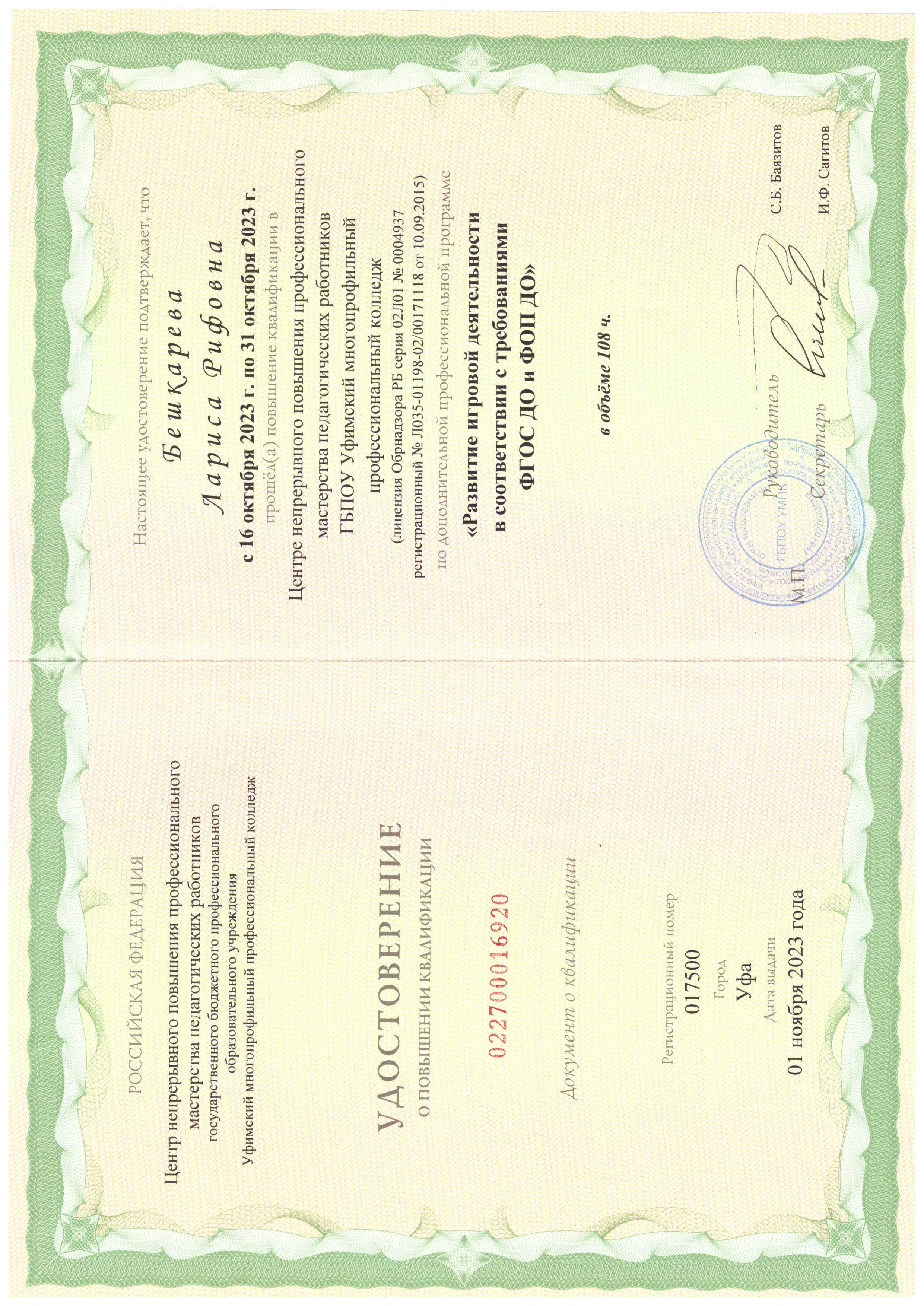 Обучение по курсу: Развитие игровой деятельности в соответствии с требованиями ФГОС ДО и ФОП ДО. Документ о повышении квалификации: скачать