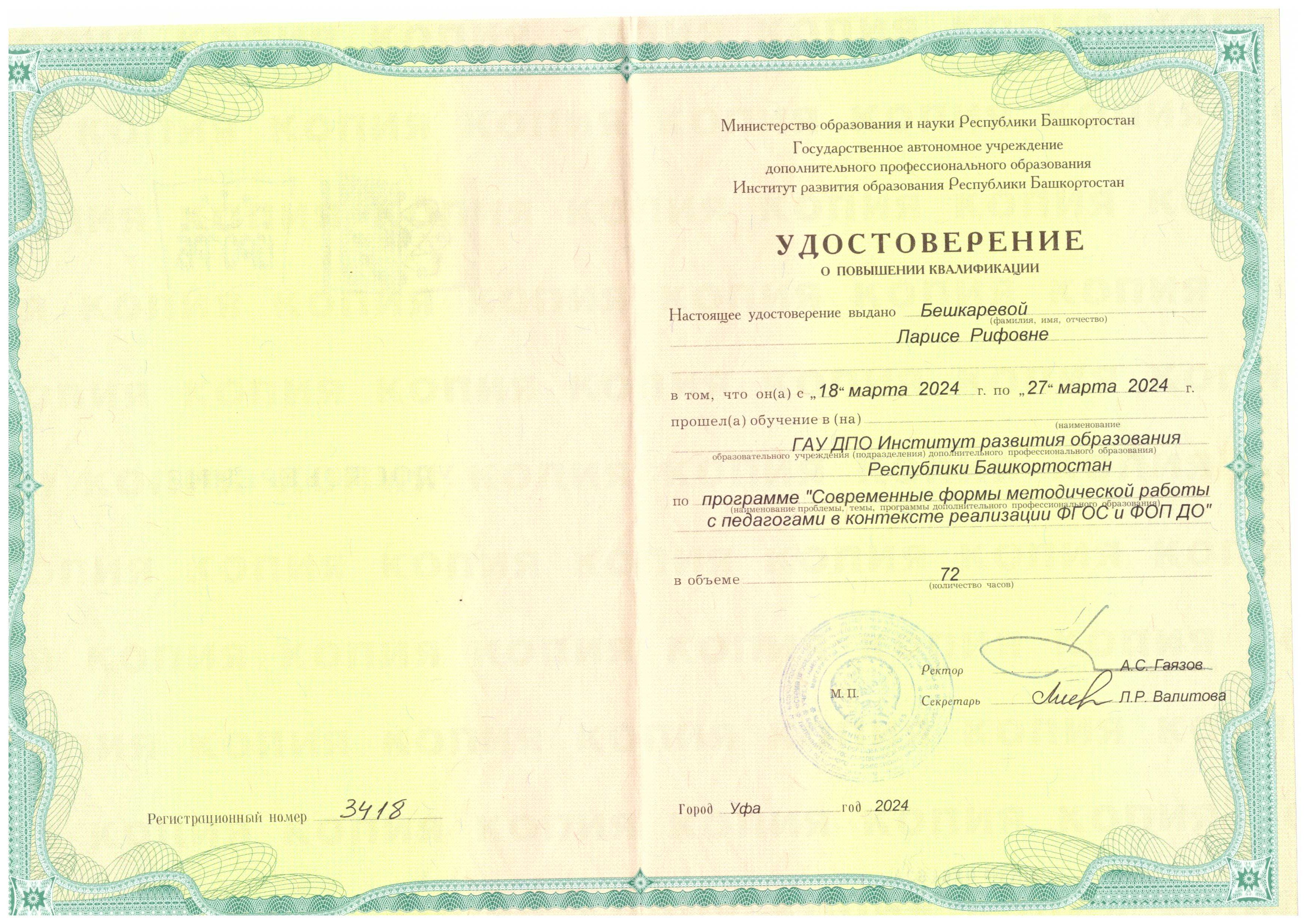 Обучение по курсу: Современные формы методической работы с педагогами в контексте реализации ФГОС и ФОП ДО. Документ о повышении квалификации: скачать