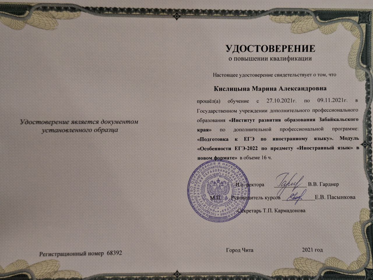 Обучение по курсу: "Подготовка к ЕГЭ по иностранному языку. Особенности ЕГЭ -2022 по предмету "Иностранный язык" в новом формате. Документ о повышении квалификации: скачать