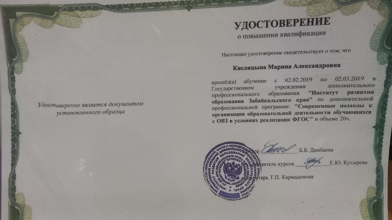 Обучение по курсу: "Современные подходы к организации образовательной деятельности обучающихся с ОВЗ в условиях реализации ФГОС". Документ о повышении квалификации: скачать