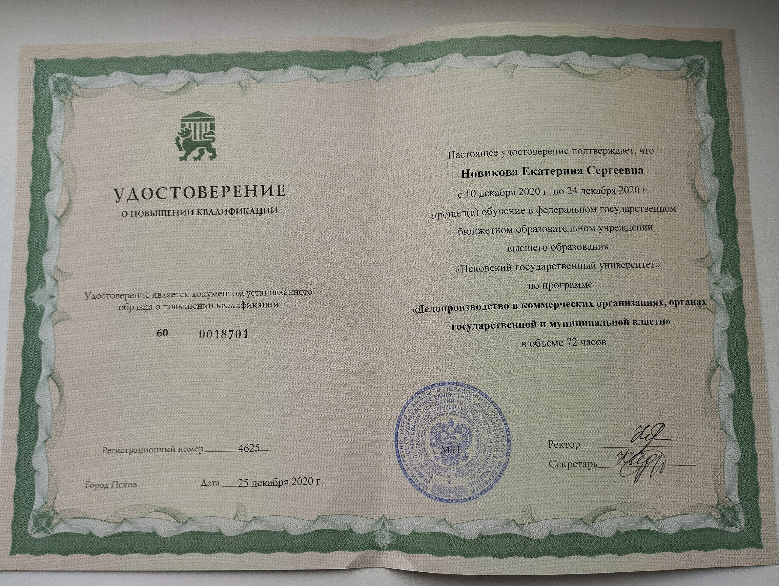 Обучение по курсу: Делопроизводство в коммерческих организациях, органах государственной и муниципальной власти. Документ о повышении квалификации: скачать