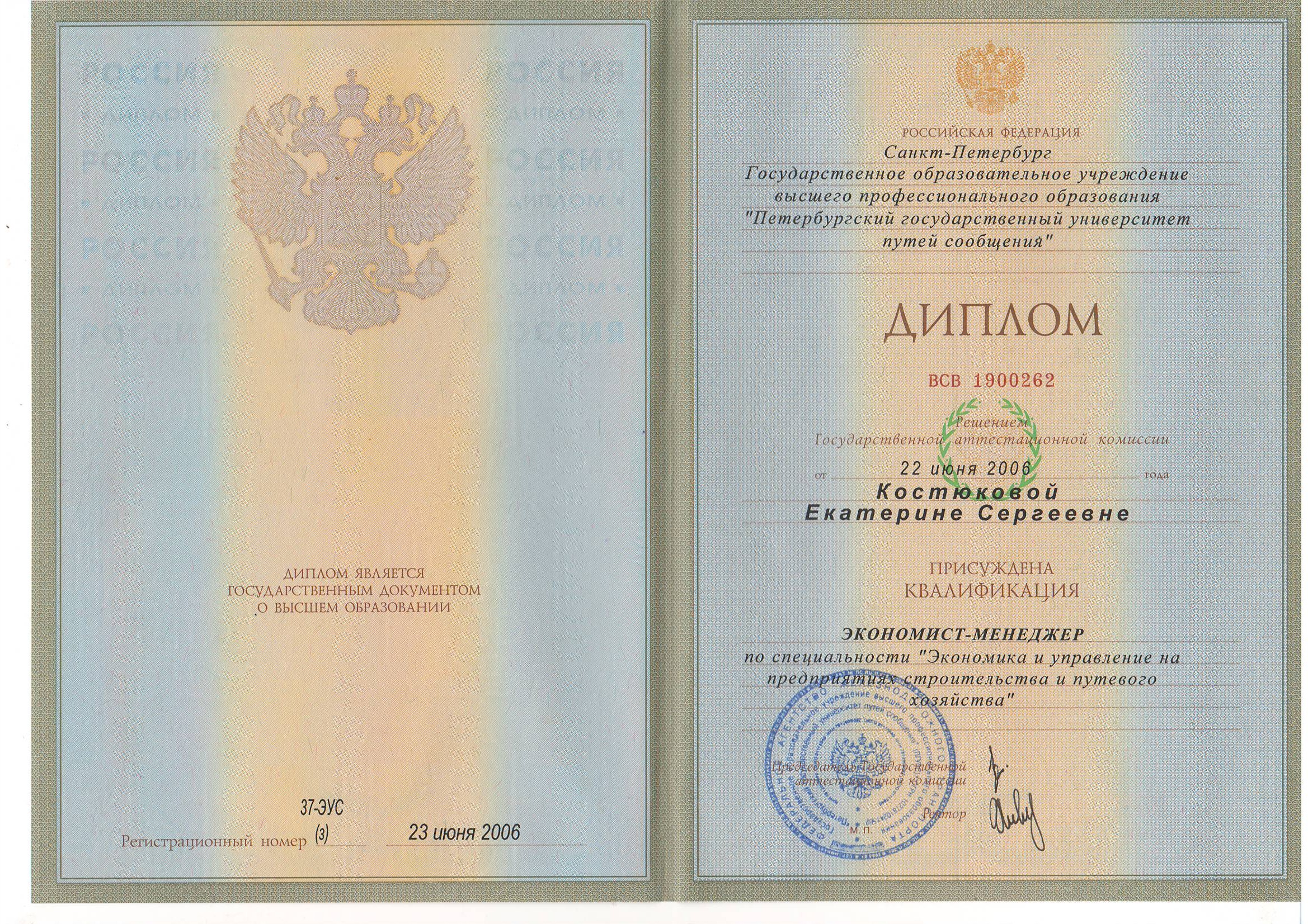 Образование по специальности: Экономика и управление на предприятиях строительства и путевого хозяйства. Присвоена квалификация: Экономист-менеджер. Документ о получении образования: скачать