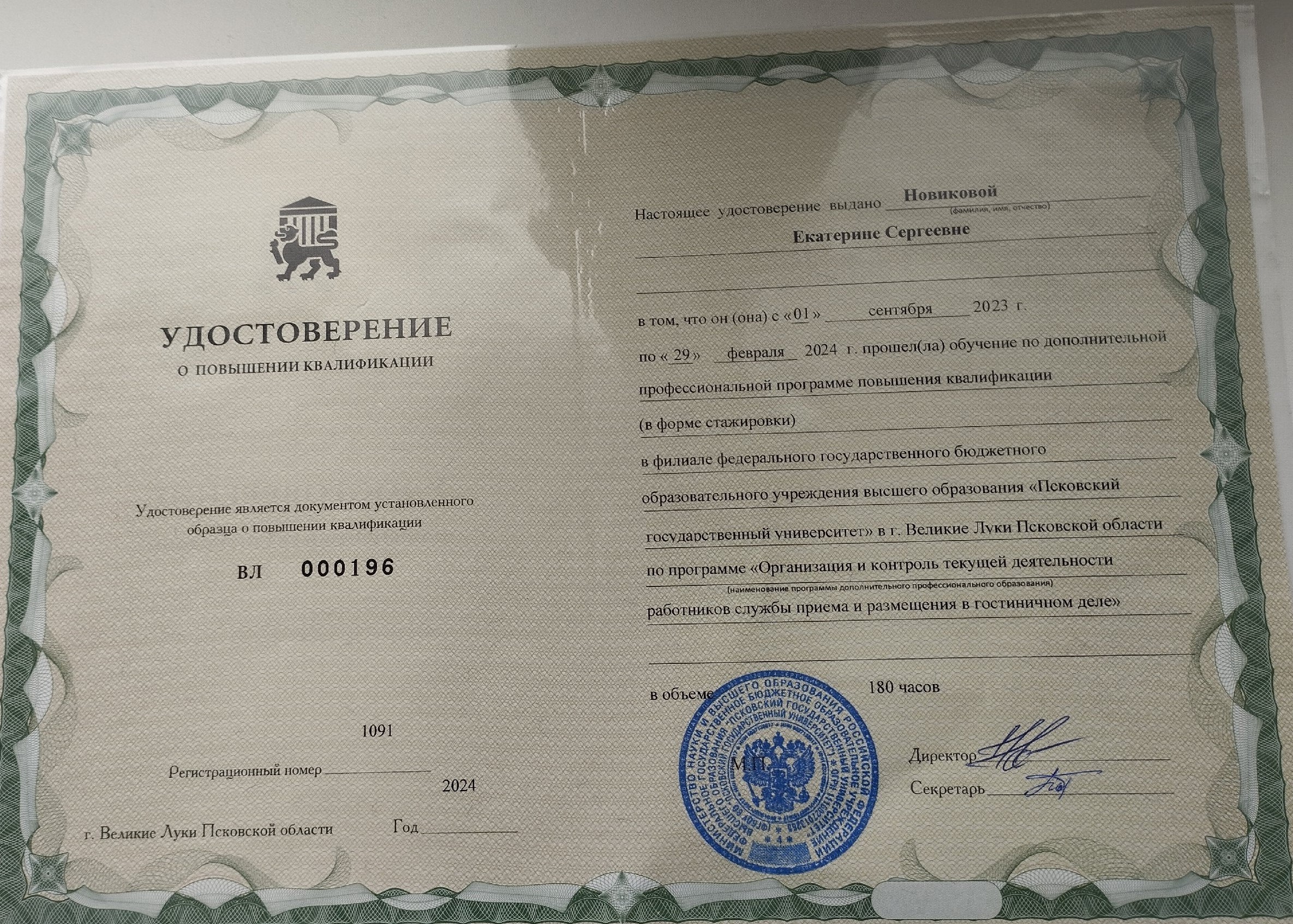 Обучение по курсу: Организация и контроль текущей деятельности работников службы бронирования и продаж в гостиничном деле.. Документ о повышении квалификации: скачать