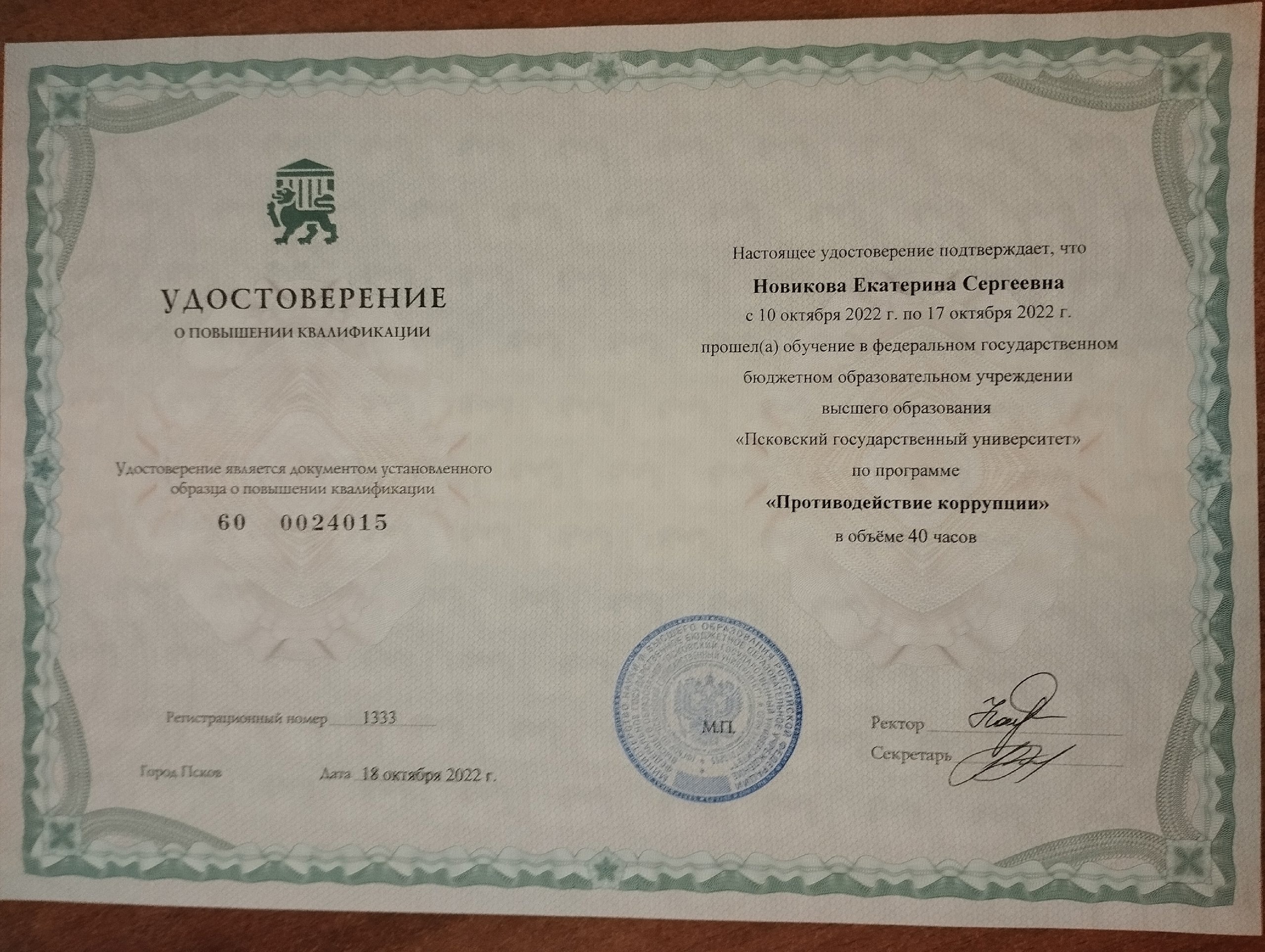 Обучение по курсу: Противодействие коррупции. Документ о повышении квалификации: скачать