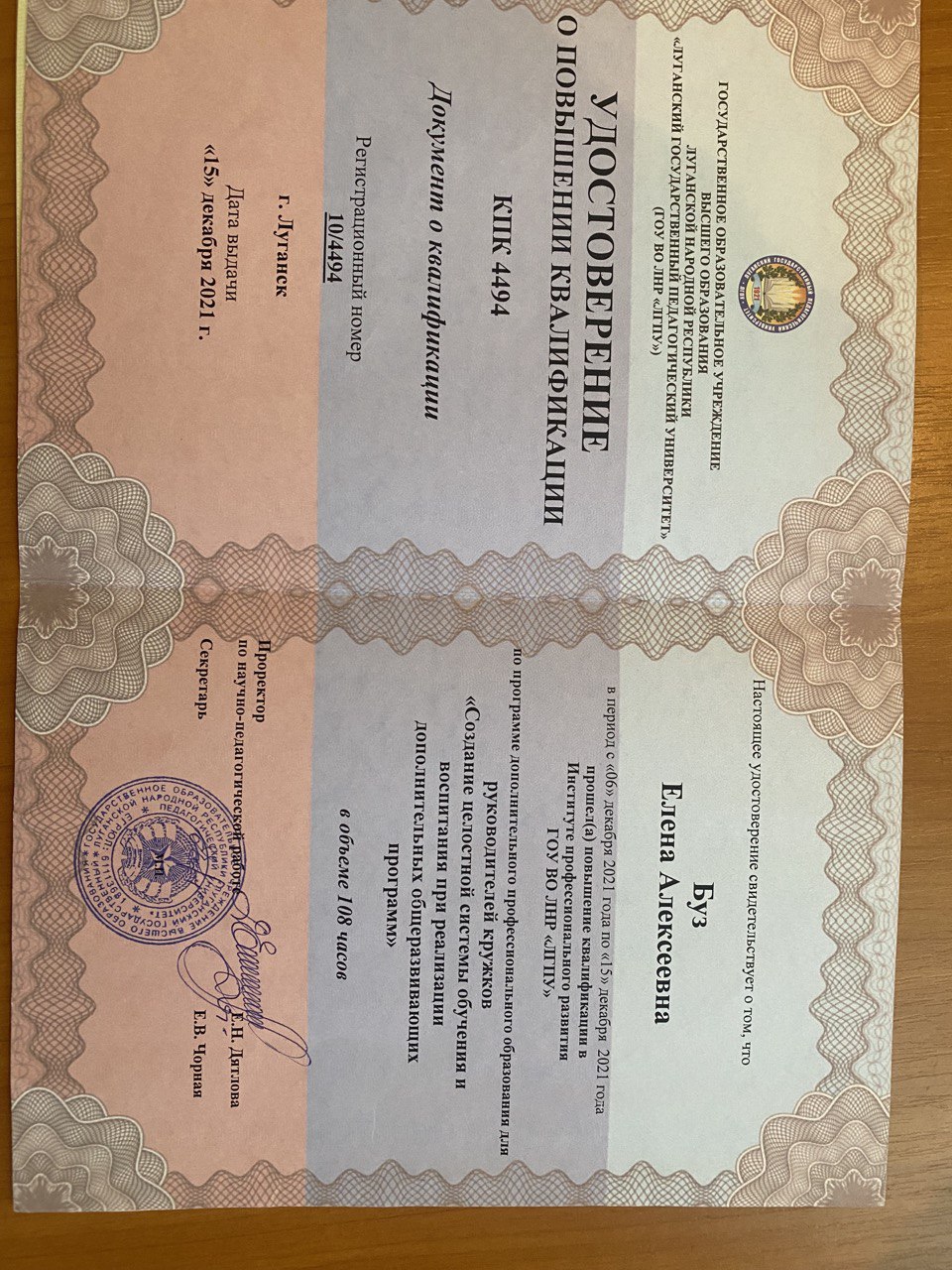 Обучение по курсу: Создание целостной системы обучения и воспитания при реализации дополнительных общеразвивающих программ. Документ о повышении квалификации: скачать