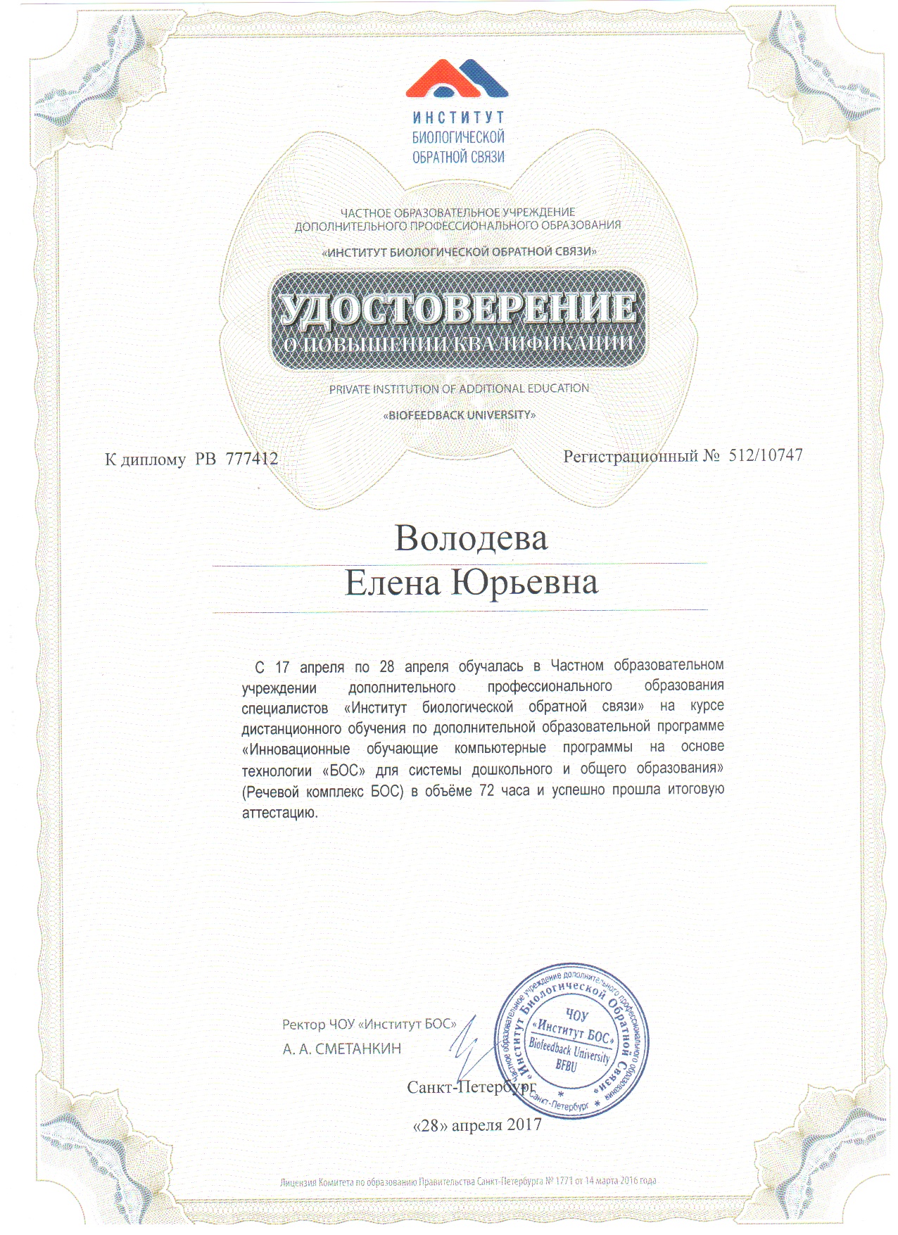Обучение по курсу: Инновационные компьютерные обучающие программы на сонове технологии БОС. Документ о повышении квалификации: скачать