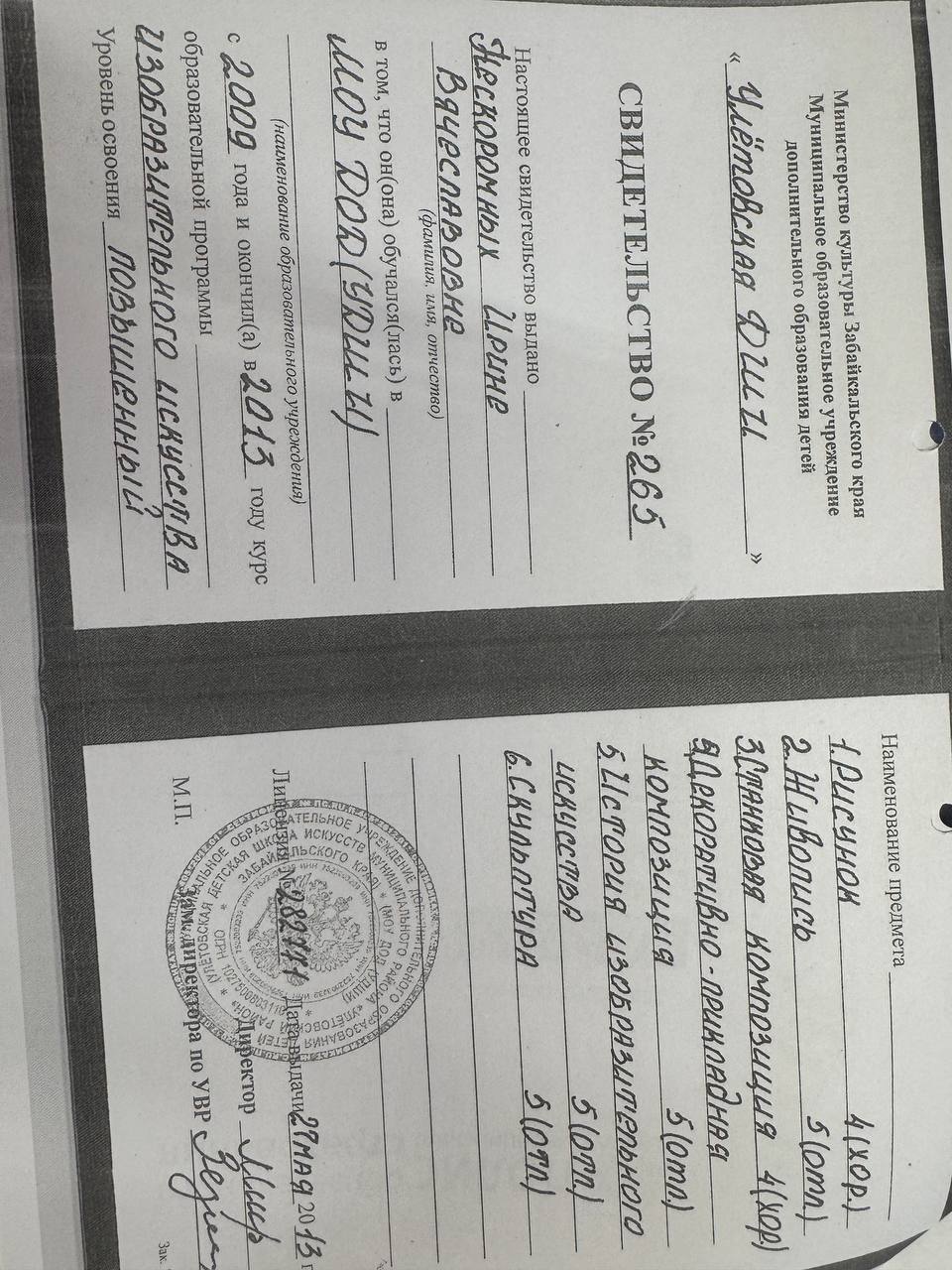 Обучение по курсу: Изобразительное искусство . Документ о повышении квалификации: скачать