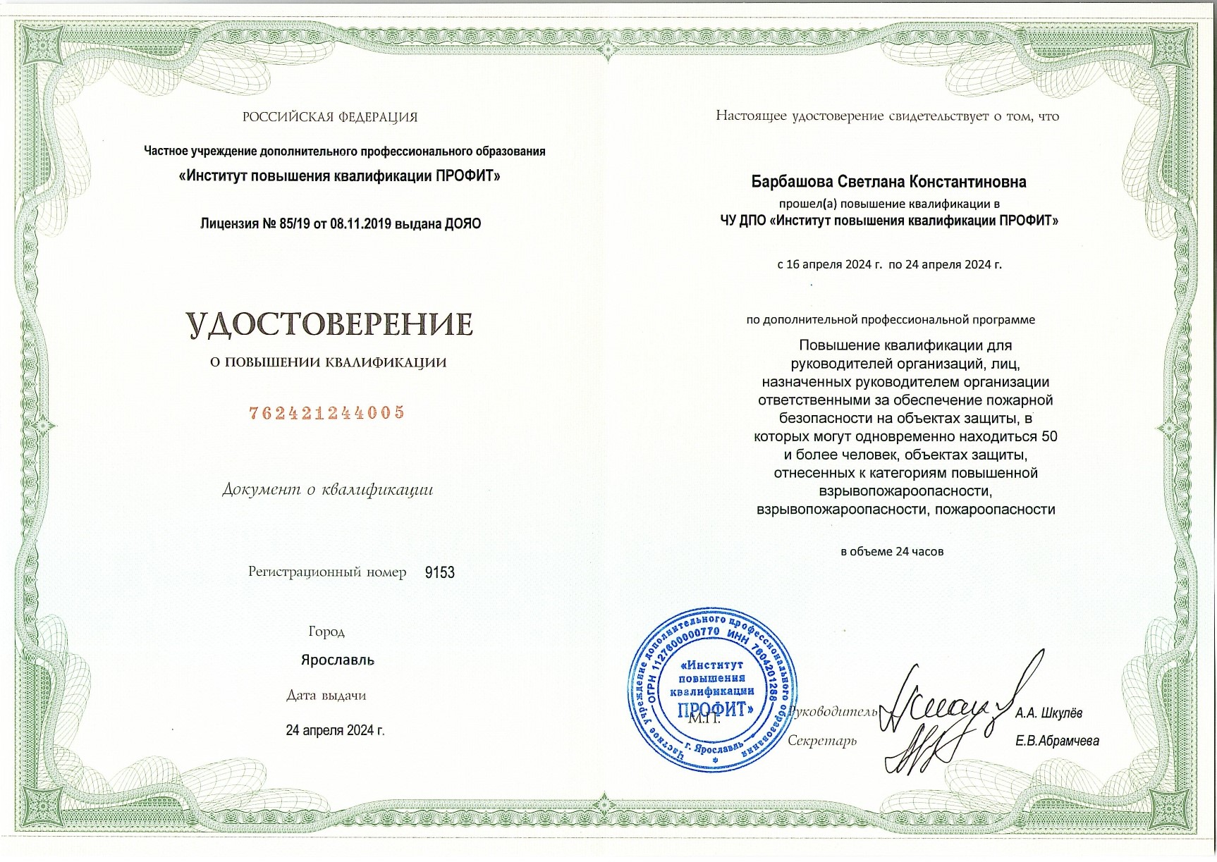 Обучение по курсу: Повышение квалификации для руководителей организаций, лиц, назначенных руководителем организации ответственными за обеспечение пожарной безопасности на объектах защиты, в которых могут одновременно находиться 50 и более человек, объектах защиты, отнесенных к категориям повышенной взрывопожароопасности, взрывопожароопасности, пожароопасности. Документ о повышении квалификации: скачать