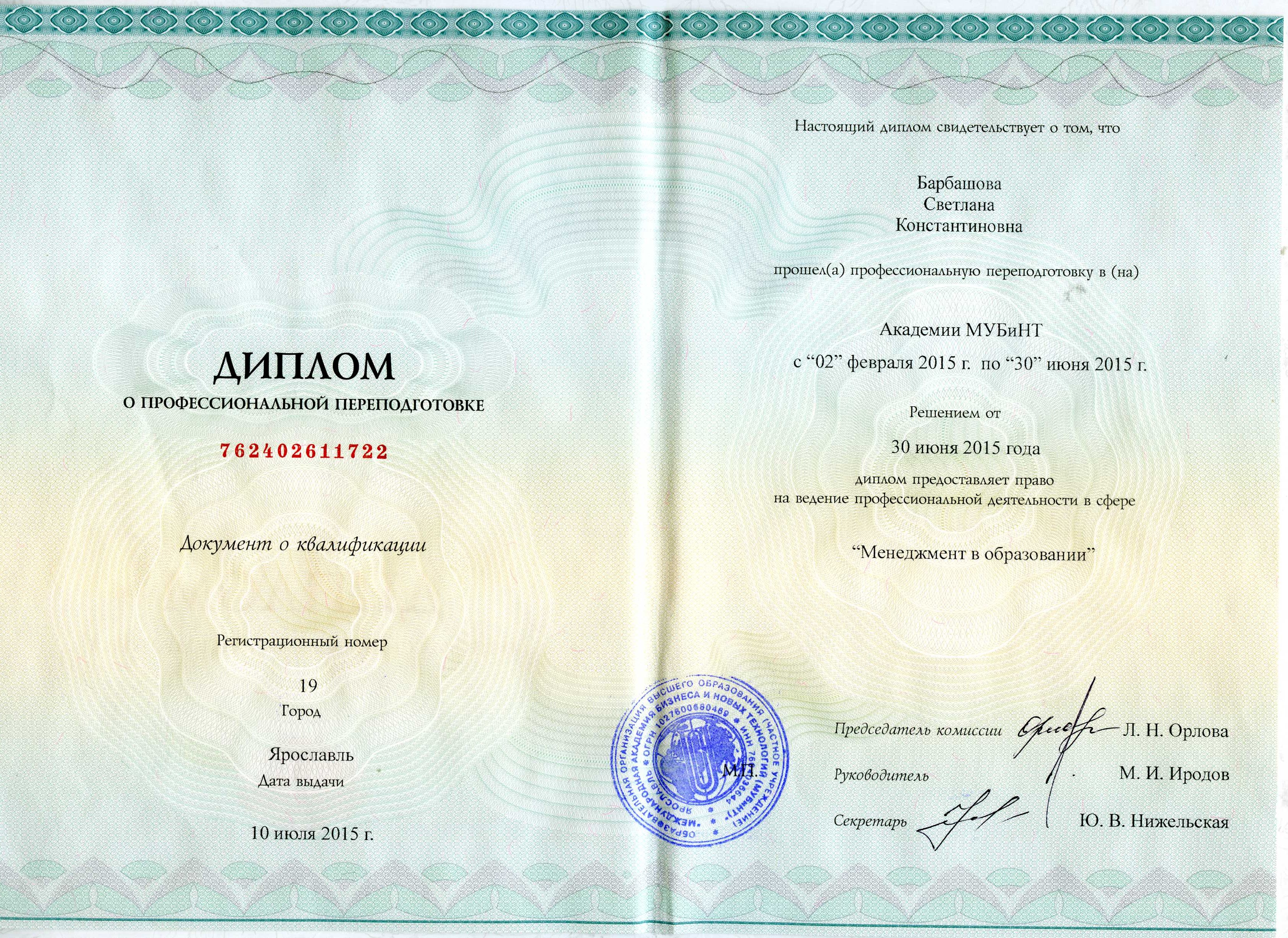 Образование по специальности: Менеджмент в образовании. Присвоена квалификация: менеджмент в образовании. Документ о получении образования: скачать