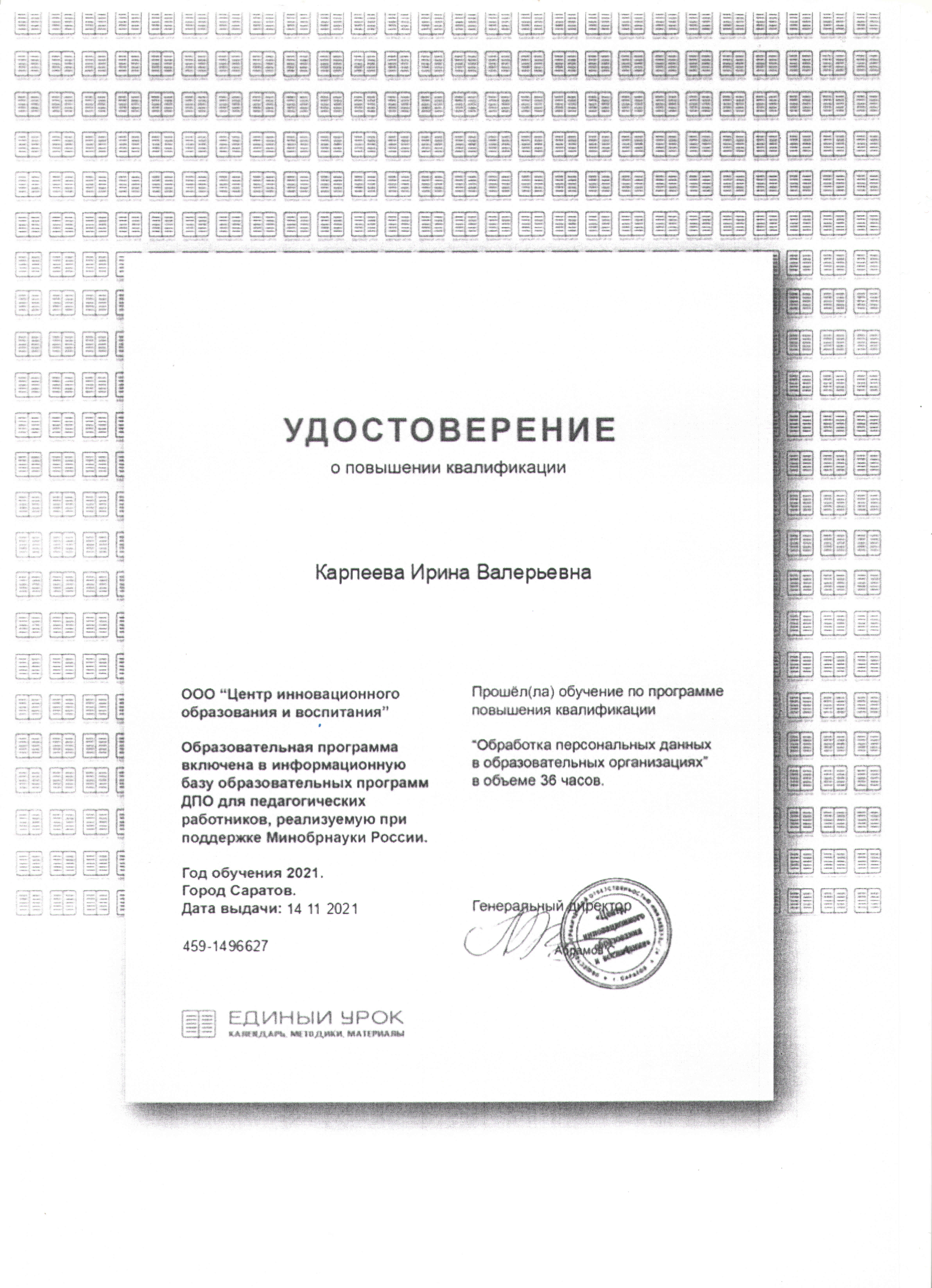 Обучение по курсу: "Обработка персональных данных в образовательных организациях". Документ о повышении квалификации: скачать