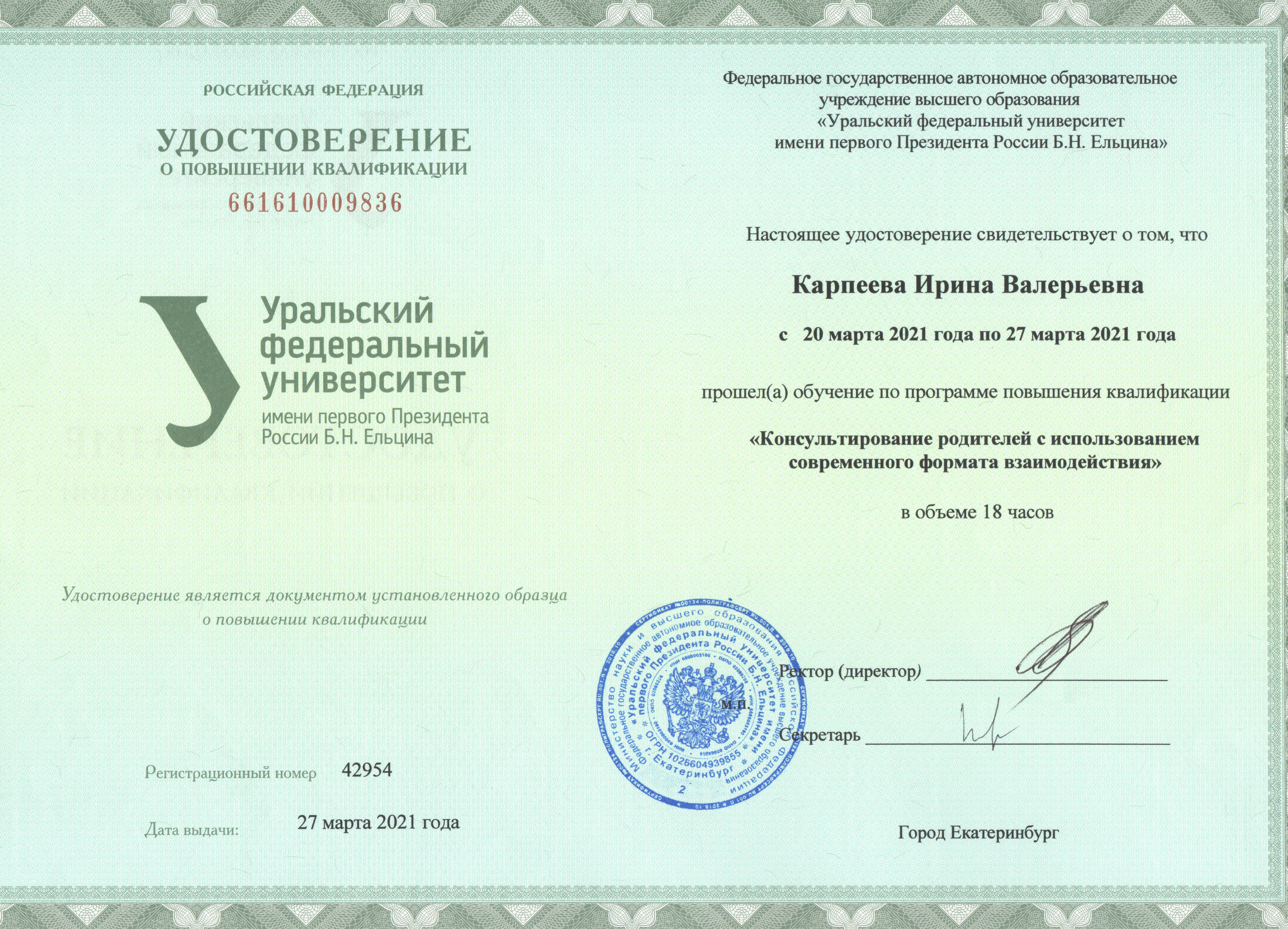 Обучение по курсу: "Консультирование родителей с использованием современного формата взаимодействия". Документ о повышении квалификации: скачать