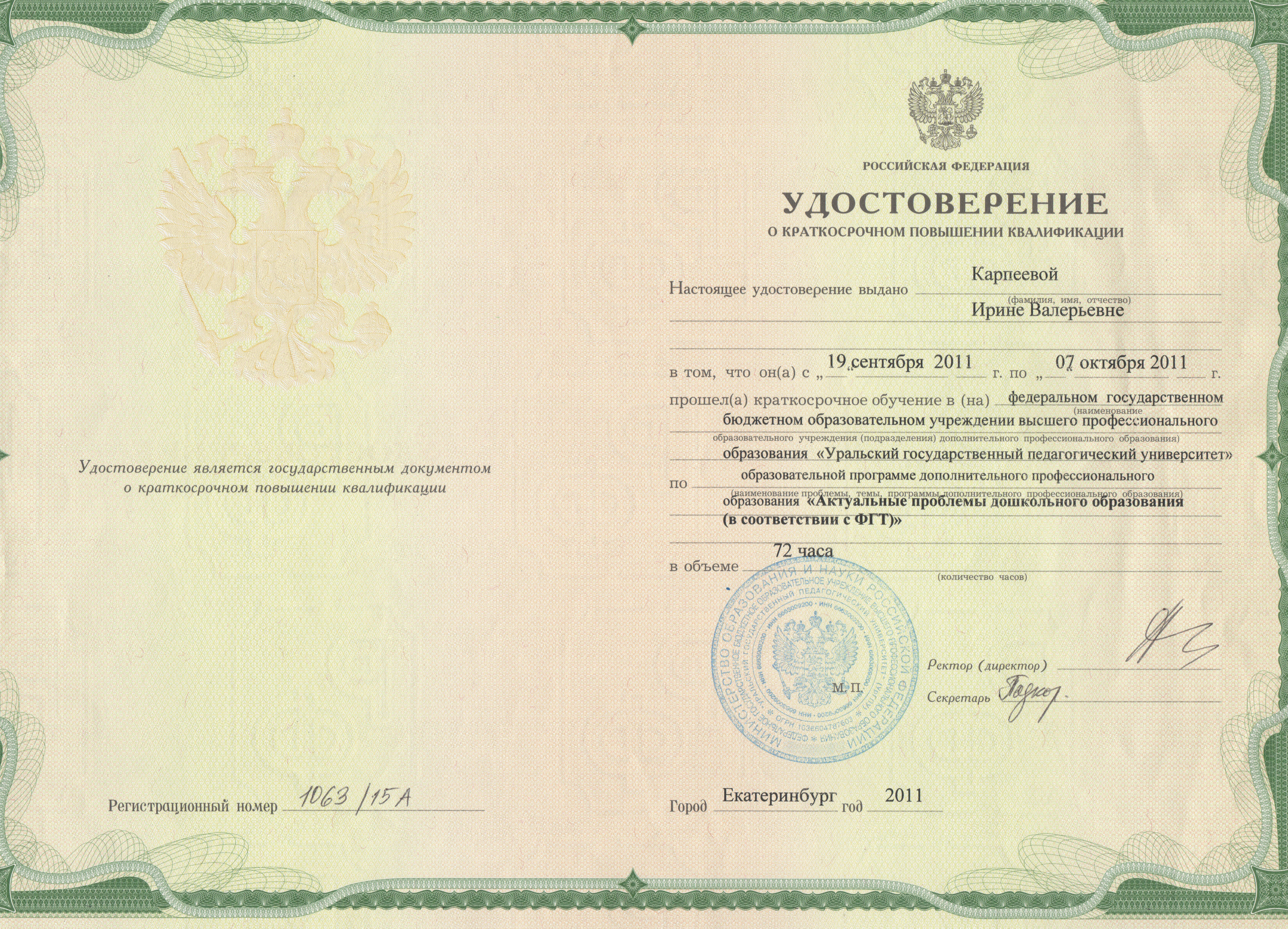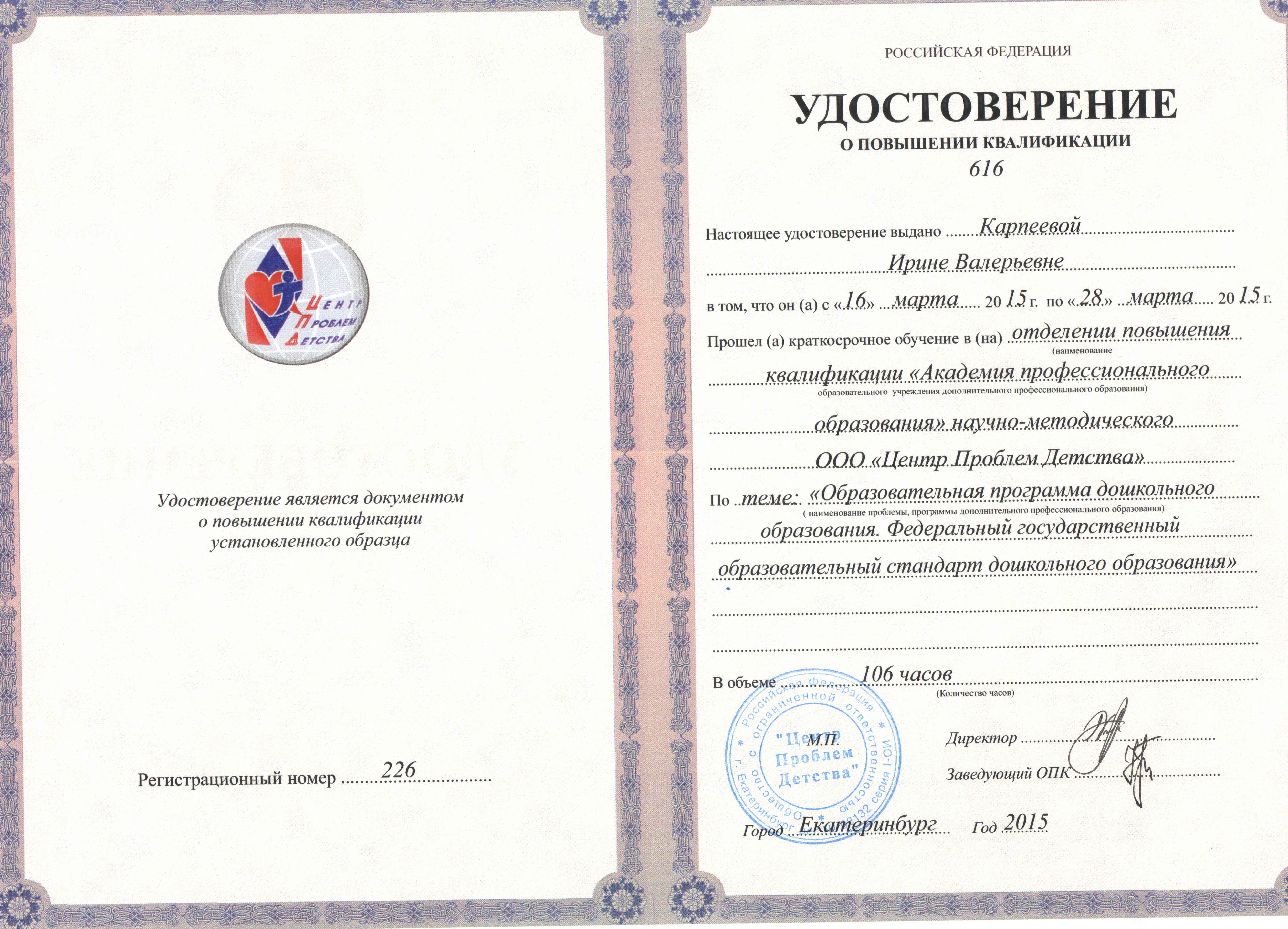 Обучение по курсу: "Образовательная программа дошкольного образования. Федеральный государственный образовательный стандарт дошкольного образования". Документ о повышении квалификации: скачать