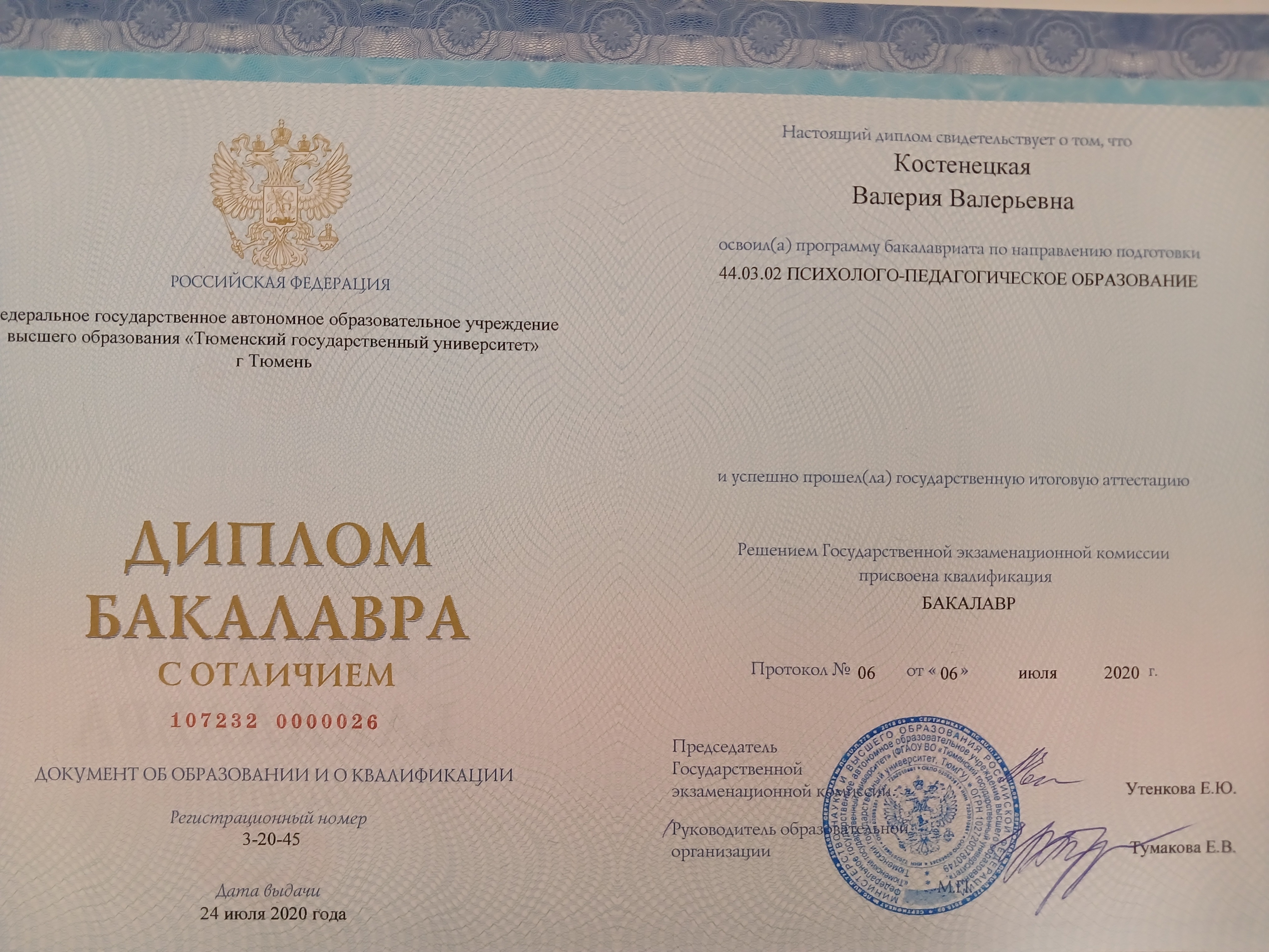 Образование по специальности: Психолого-педагогическое образование . Присвоена квалификация: Бакалавр . Документ о получении образования: скачать