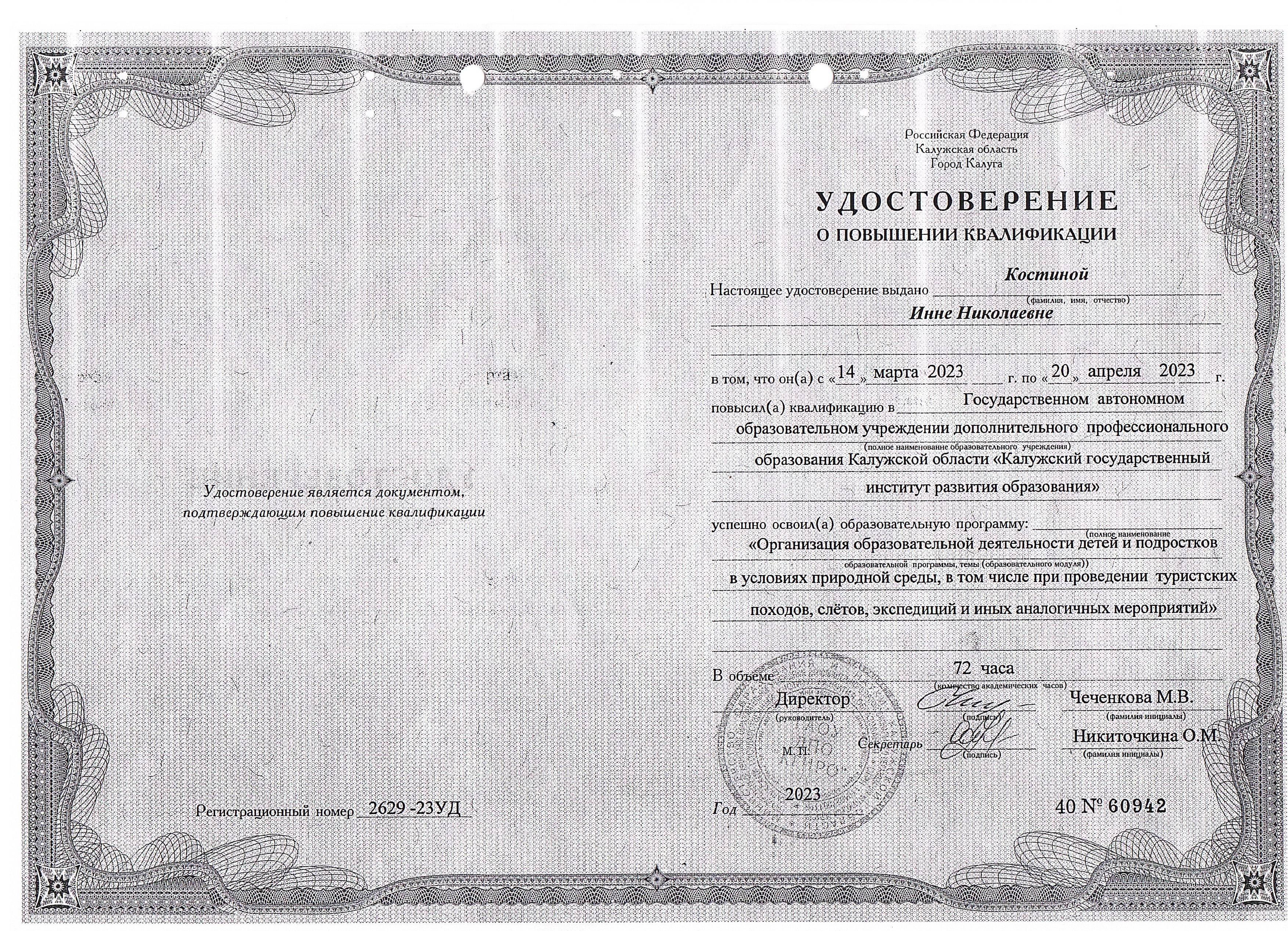 Обучение по курсу: «Организация образовательной деятельности детей и подростков в условиях природной среды, в том числе при проведении туристских походов, слётов, экспедиций и иных аналогичных мероприятий». Документ о повышении квалификации: скачать
