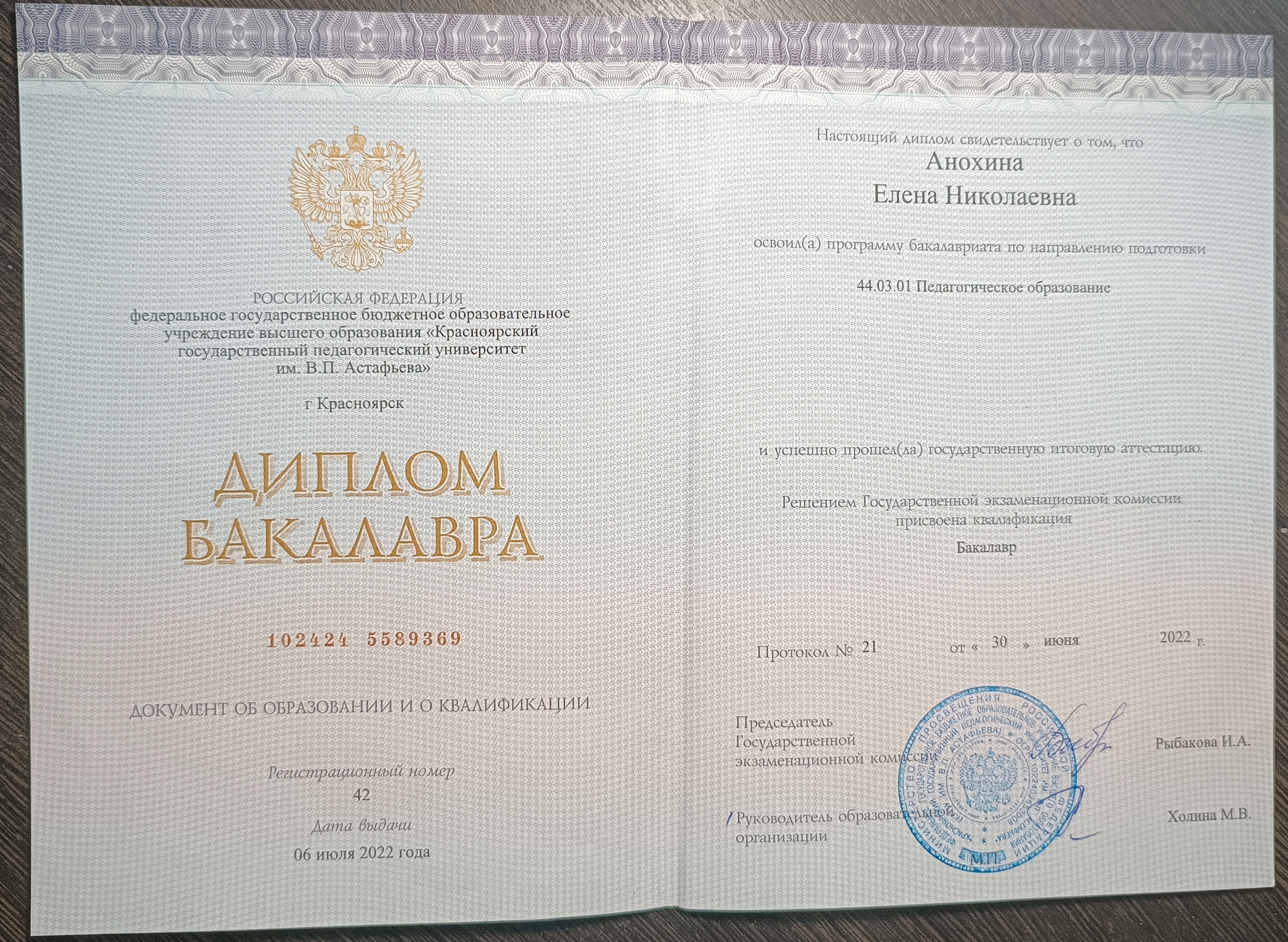 Образование по специальности: Педагогическое образование. Присвоена квалификация: Бакалавр. Документ о получении образования: скачать