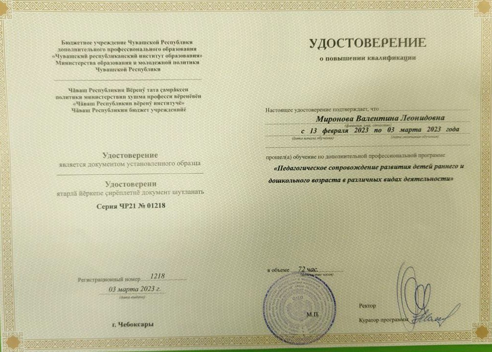 Обучение по курсу: "Педагогическое сопровождение детей раннего и дошкольного возраста в различных видах деятельности". Документ о повышении квалификации: скачать