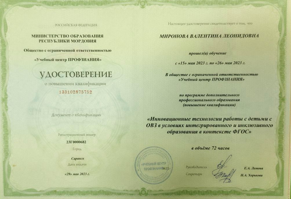 Обучение по курсу: "Инновационные технологии работы с детьми ОВЗ в условиях интегрированного и инклюзивного образования в контексте ФГОС. Документ о повышении квалификации: скачать