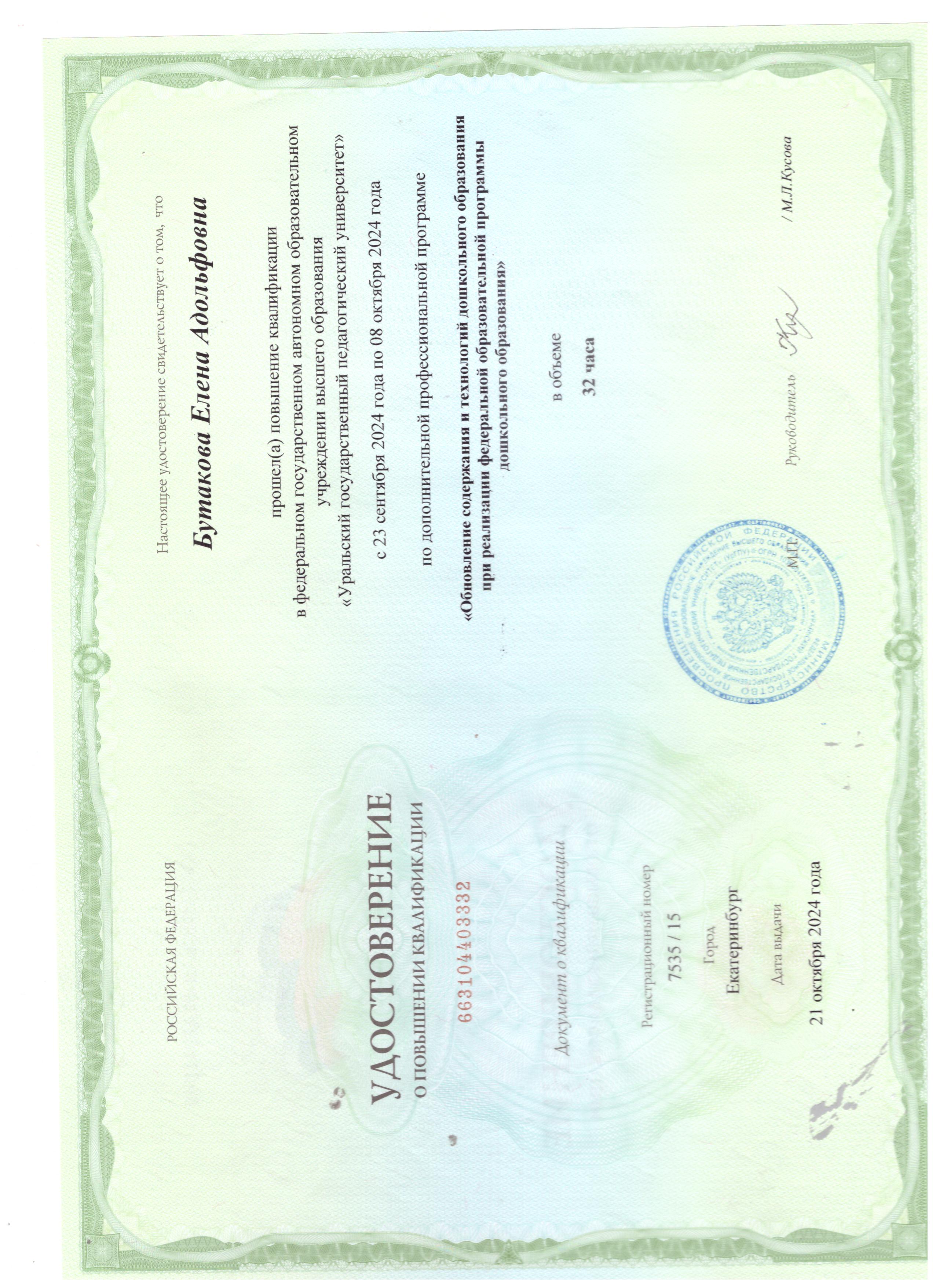 Обучение по курсу: "Обновление содержания и технологий дошкольного образования при реализации федеральной образовательной программы дошкольного образования". Документ о повышении квалификации: скачать
