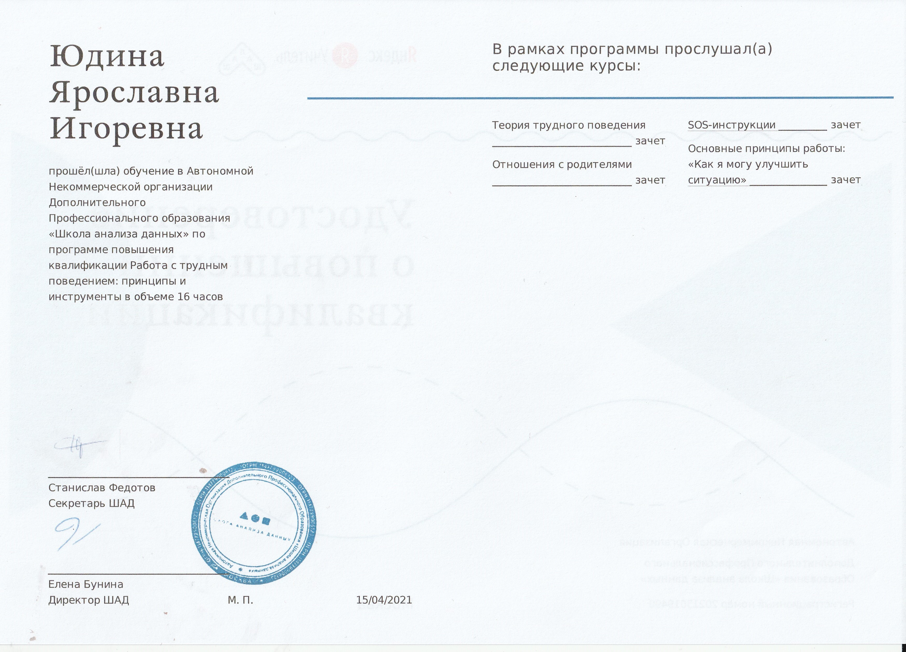 Обучение по курсу: Работа с трудными детьми. Документ о повышении квалификации: скачать