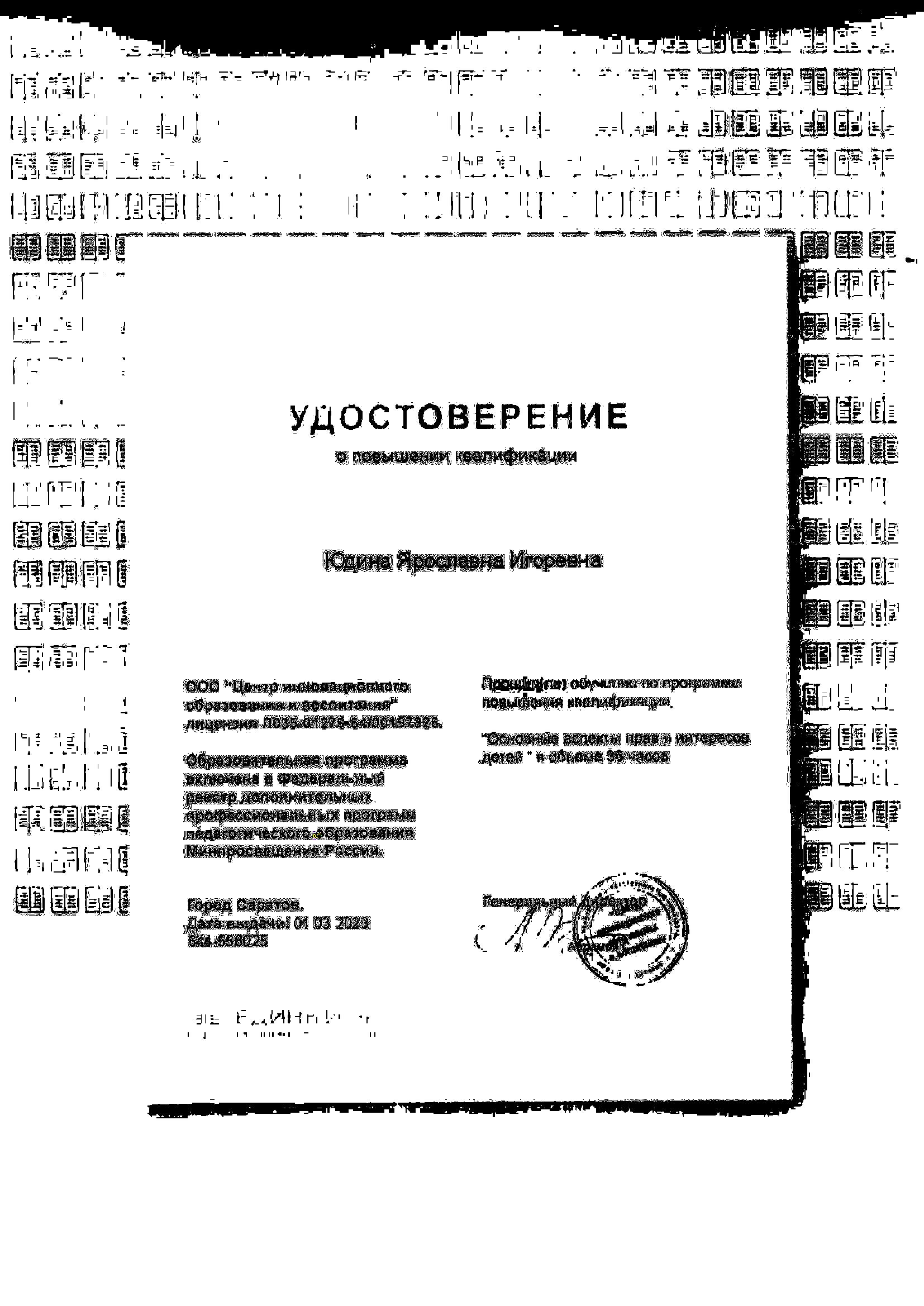 Обучение по курсу: "Основные аспекты прав интересов детей". Документ о повышении квалификации: скачать
