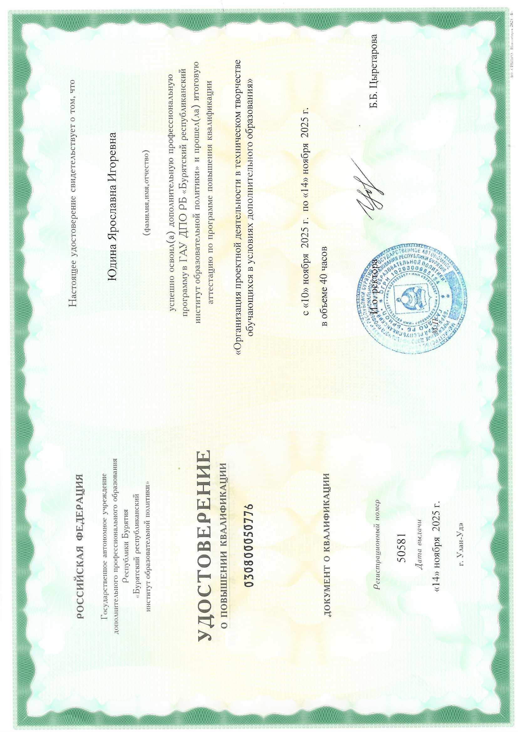 Обучение по курсу: "Организация проектной деятельности в техническом творчестве обучающихся в условиях дополнительного образования". Документ о повышении квалификации: скачать