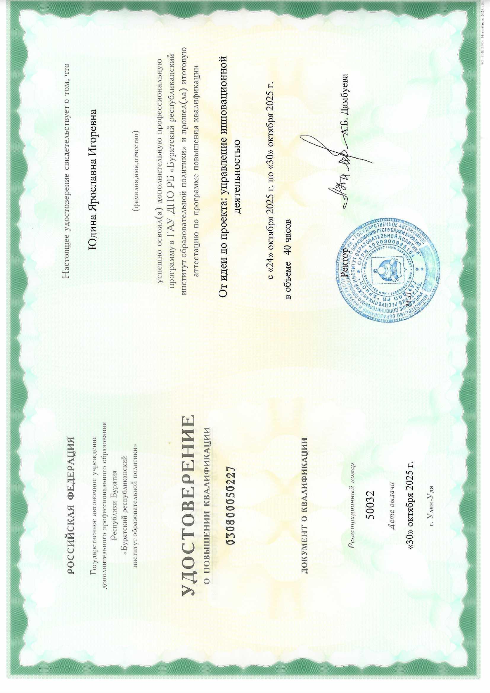 Обучение по курсу: От идеи до проекта: управление инновационной деятельностью". Документ о повышении квалификации: скачать
